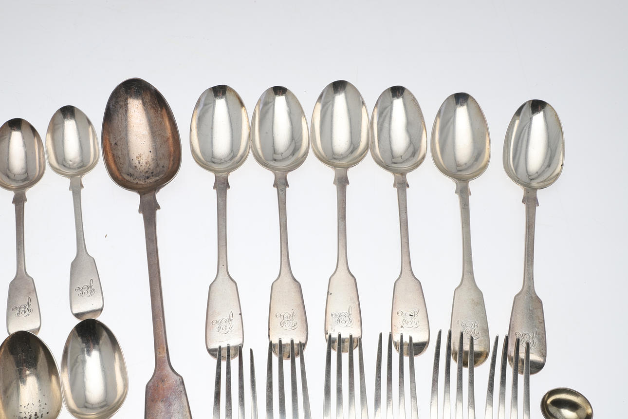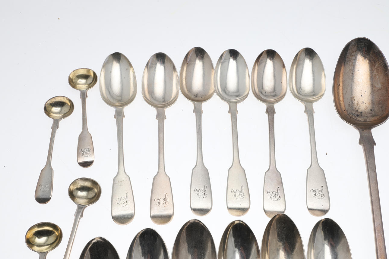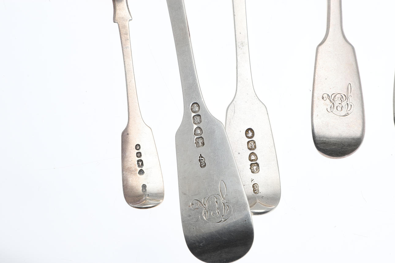 All with engraved initials to the handles. Hallmarked for Chawner & Co, London, 1848, 1849, 1852. Total weight 55.2ozt. (31).