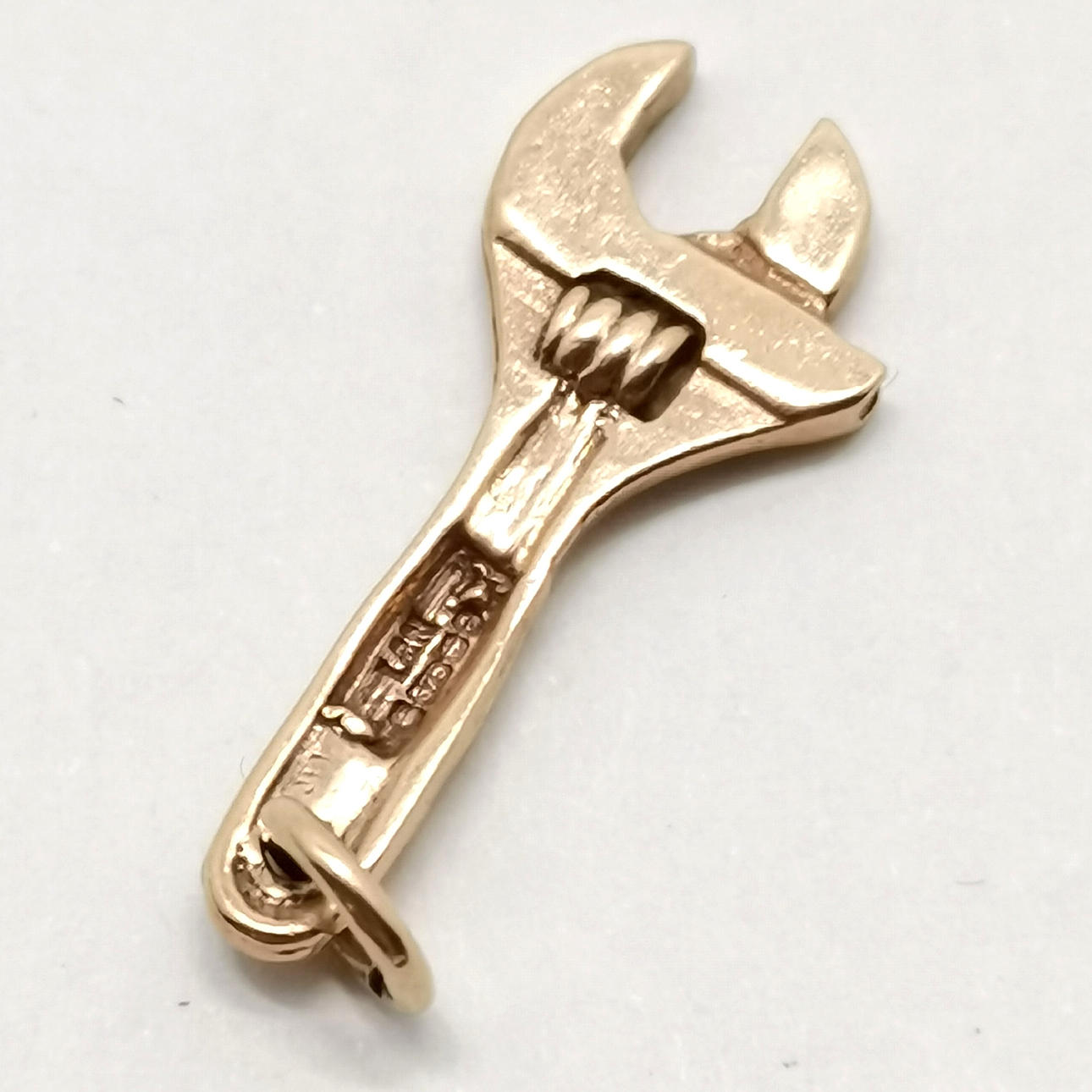 9ct hallmarked gold monkey wrench charm / pendant - 2.5cm & 1.5g.