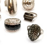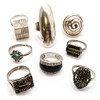 8 x silver marked rings inc 15mm cube, 44mm long oval by A&S etc - total weight (8) 57g ~ some stones missing.