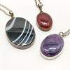 4 x silver stone set pendants (inc amethyst) on silver chains (1 chain unmarked) - total weight (lot) 50g.