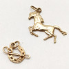 2 x Unmarked gold pendants - horse (2.2cm long) & horseshoe / riding crop ~ 1.2g total weight (2).