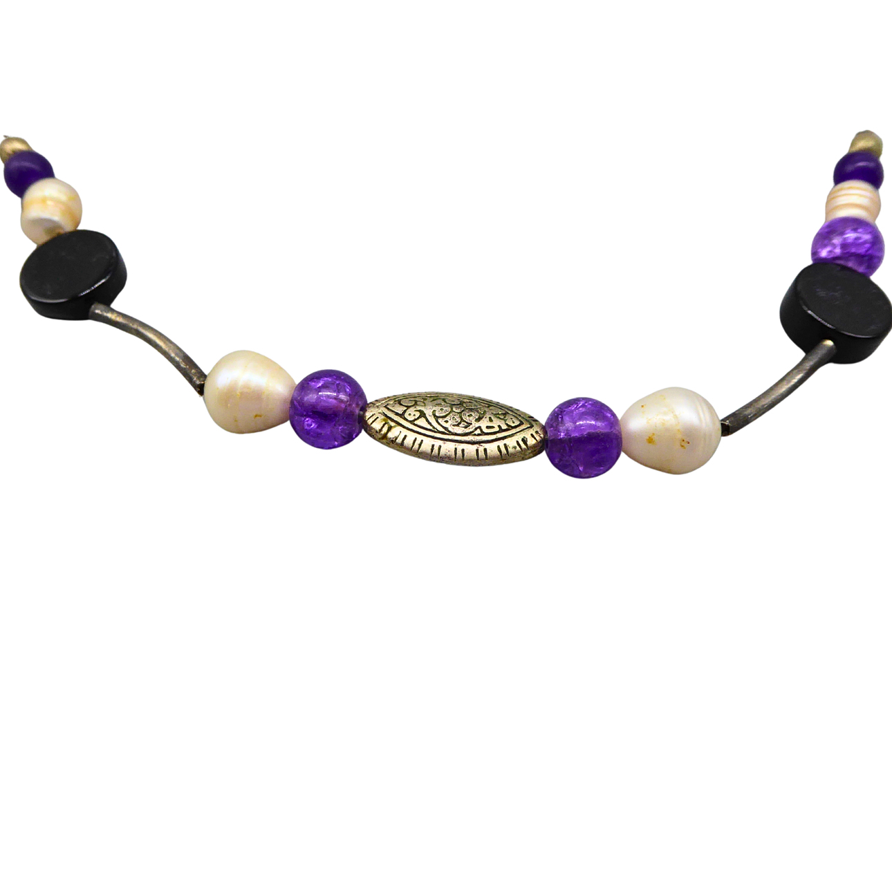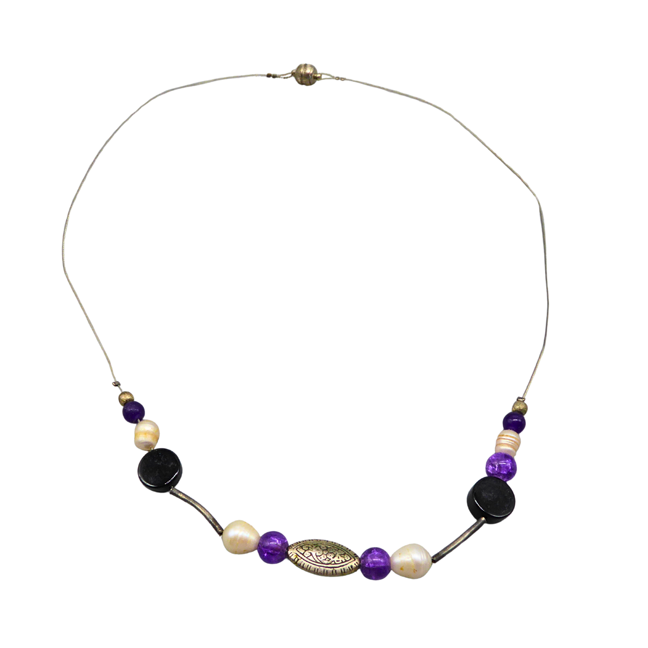 5018456. WIRE NECKLACE WITH PLASTIC BEADS AND DECORATIVE ELEMENTS.