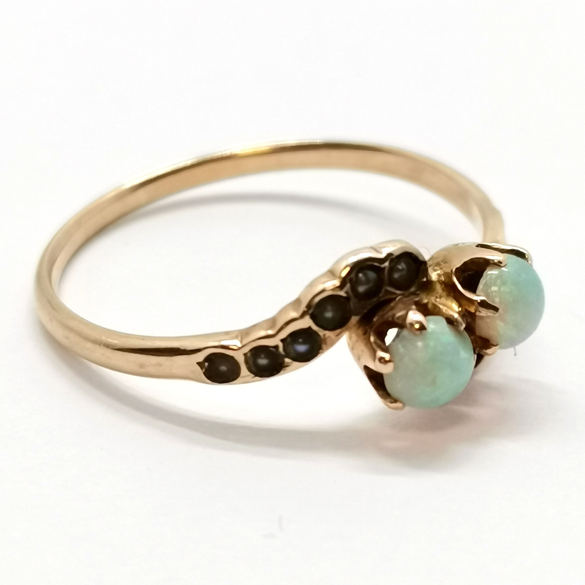 5018467. GOLD OPAL & SEED PEARL CROSSOVER RING.