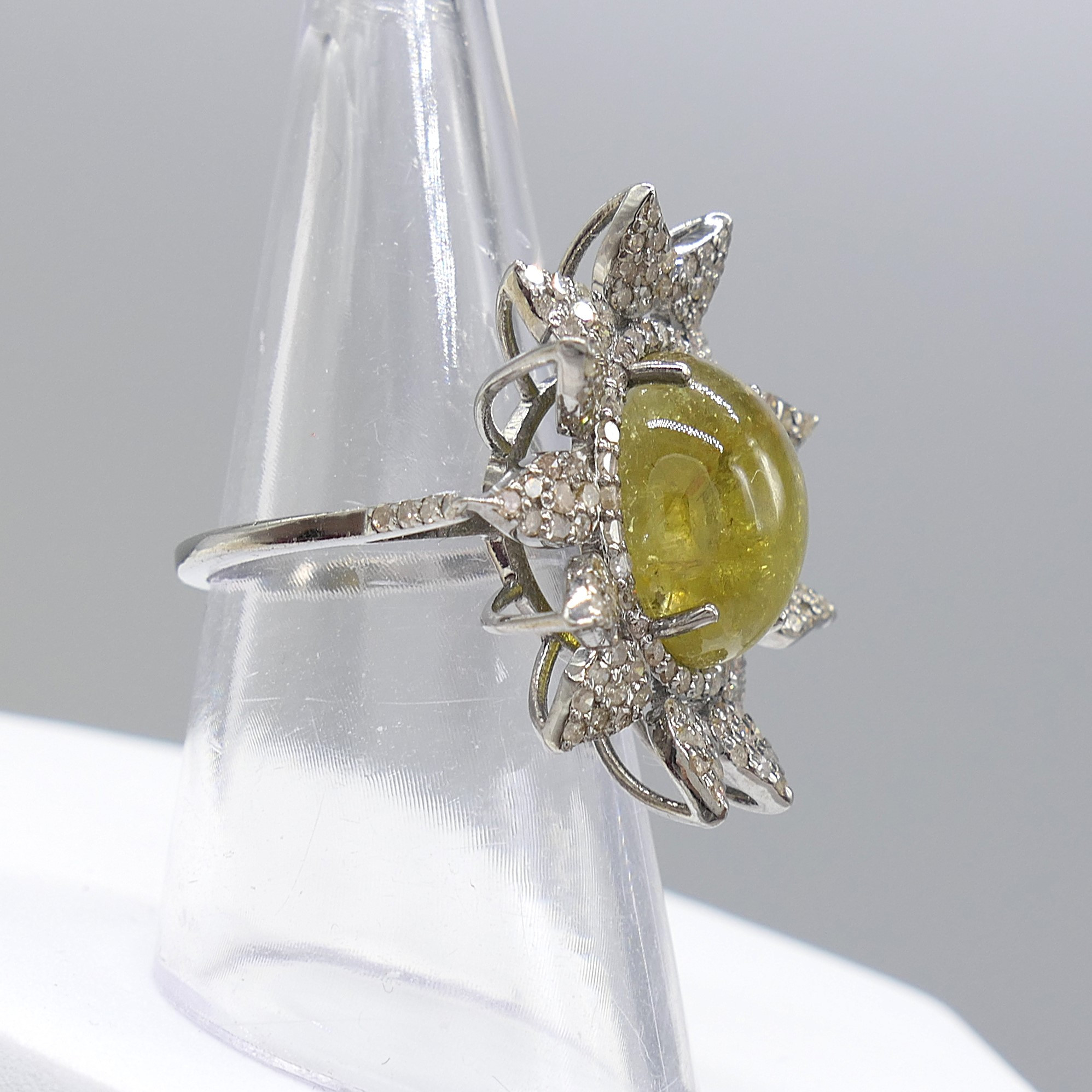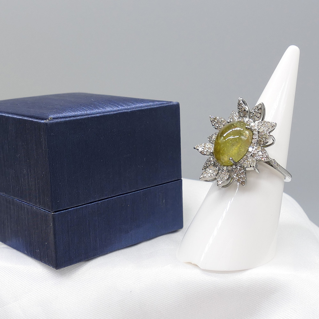 5018475. FOLIATE TOURMALINE & DIAMOND ring.
