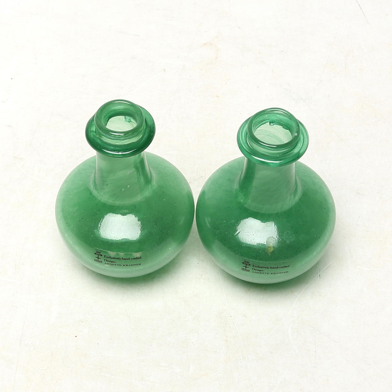 ANNETTE KRAHNER. MINIVASES 2 pcs, glass, Skruf, signed.