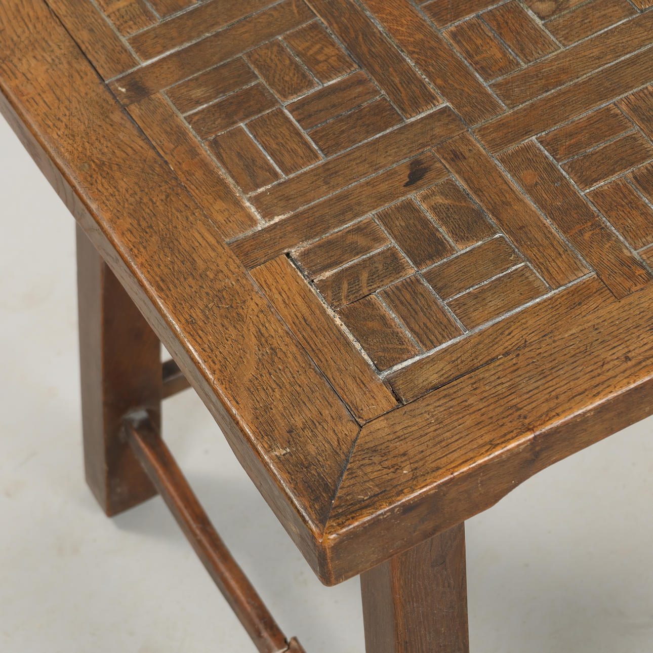 Age and usage traces, including scratches, marks and notches. One sarg of the table is broken. The joints are worn out and have rejects.
