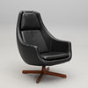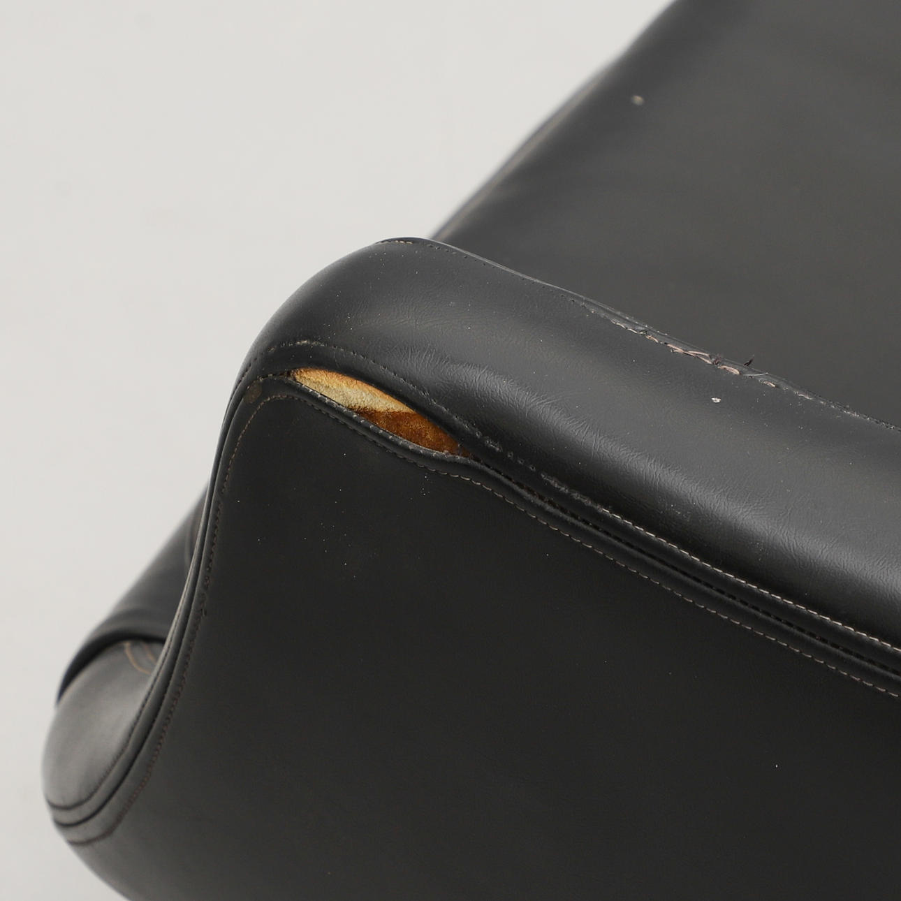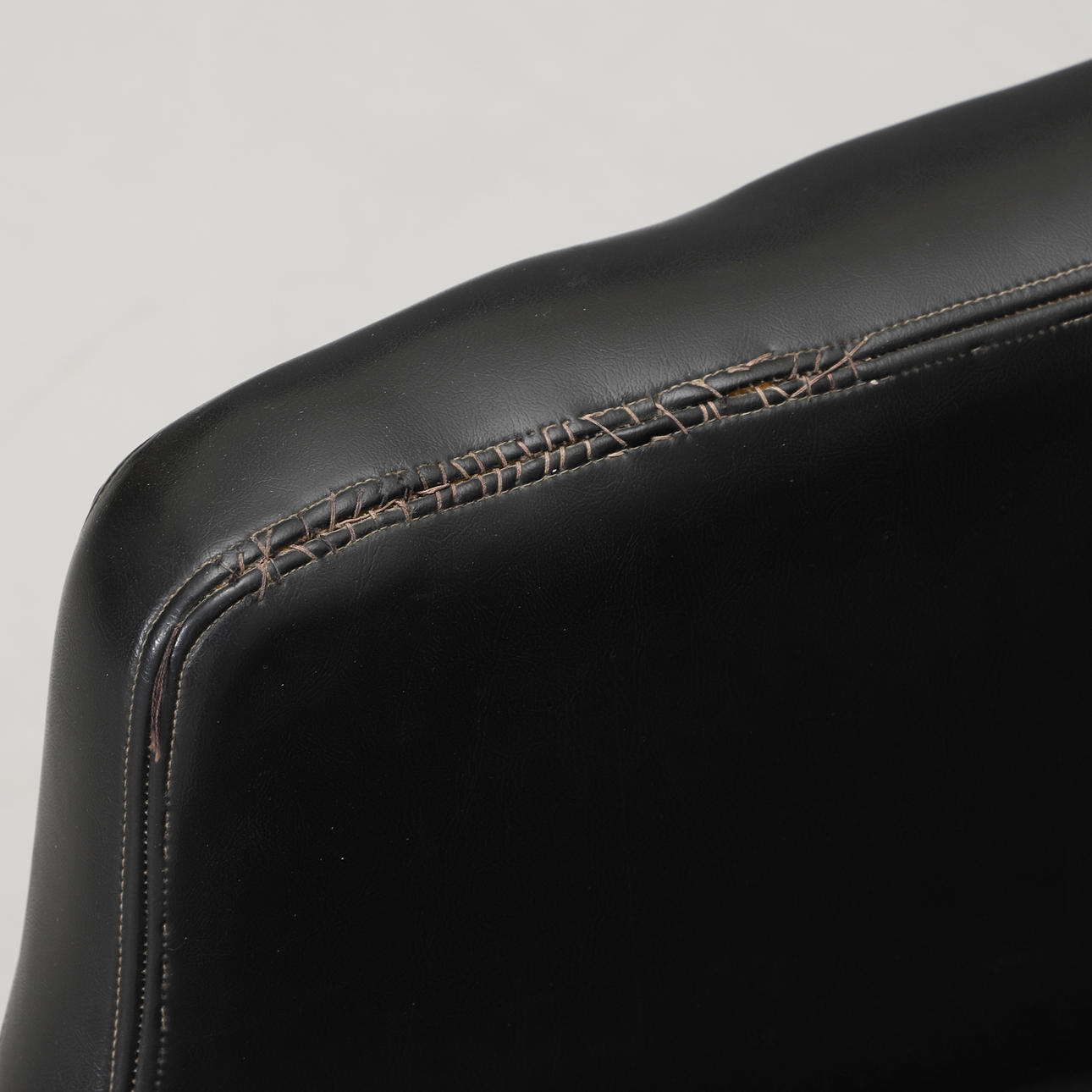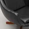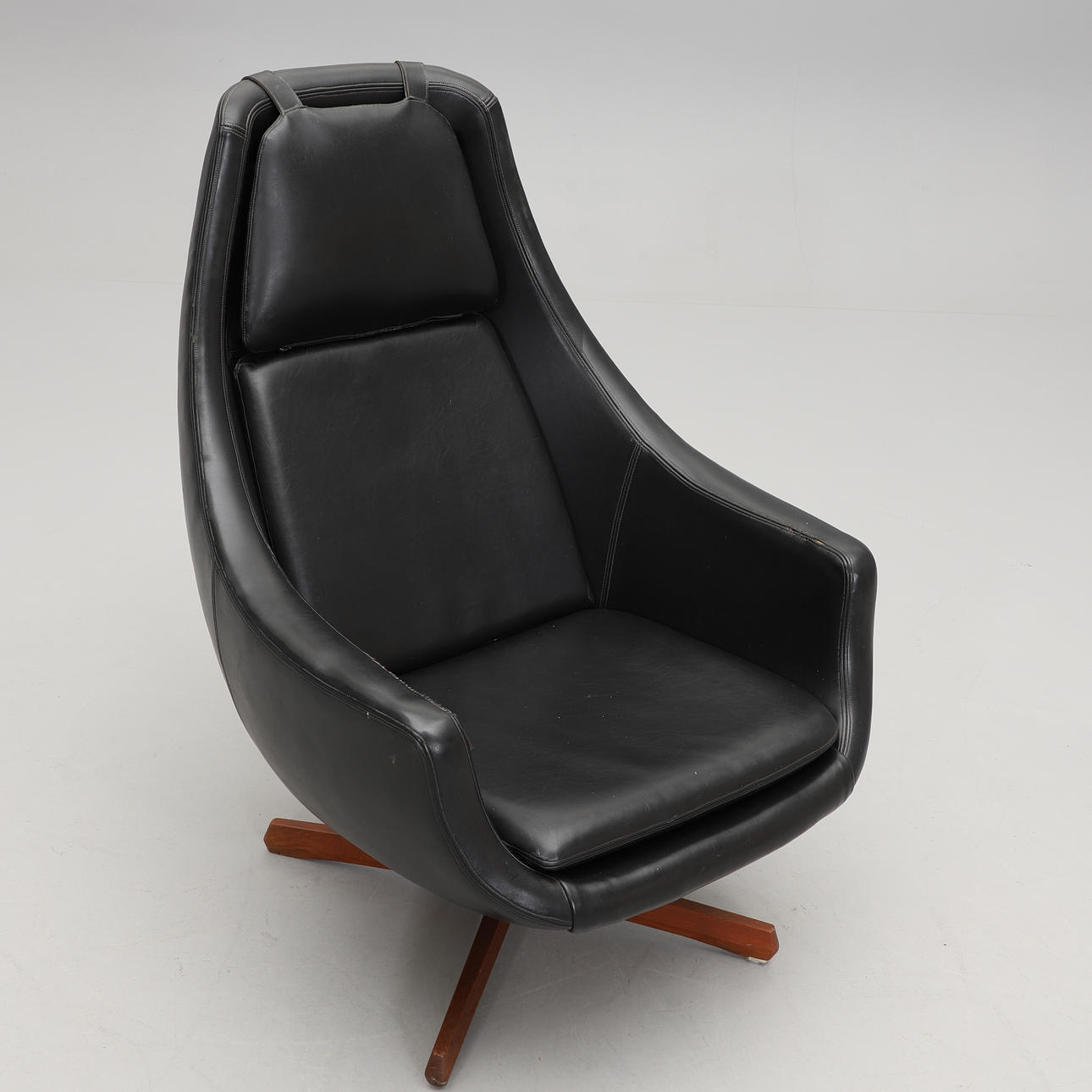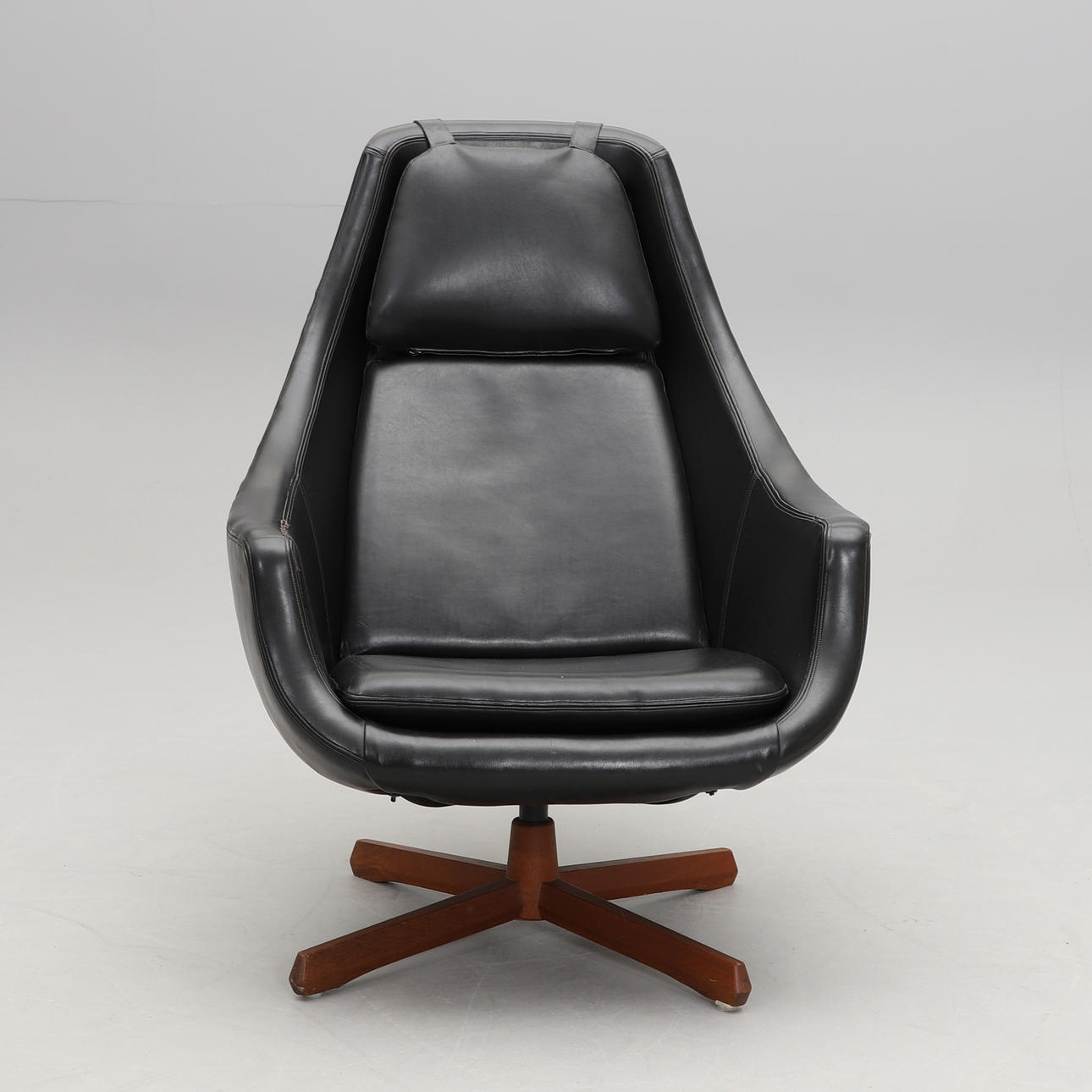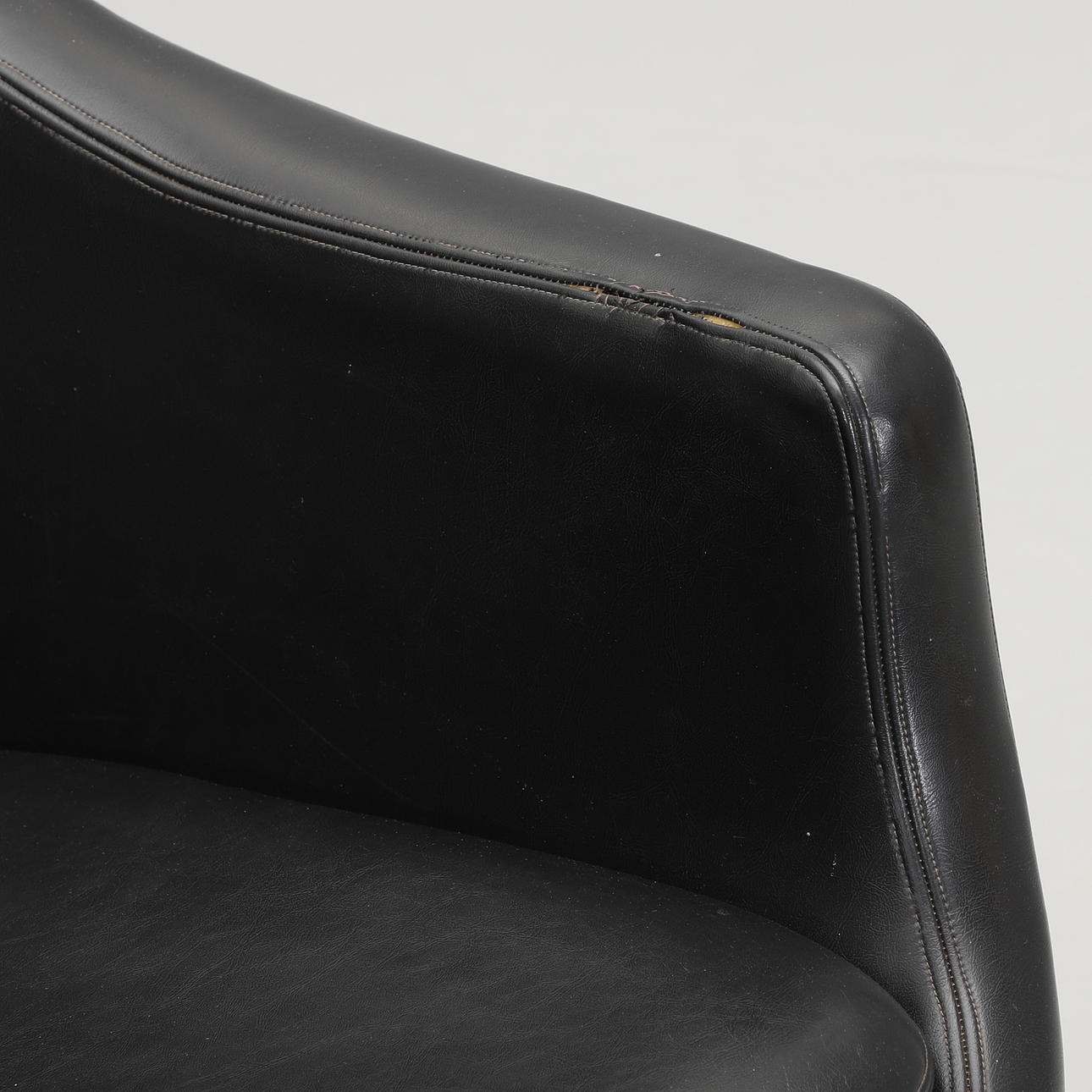 Upholstered, with loose padded pads, upholstered in black artificial leather, spinnable foot in teak. Width 75, depth 80, height 99 cm.