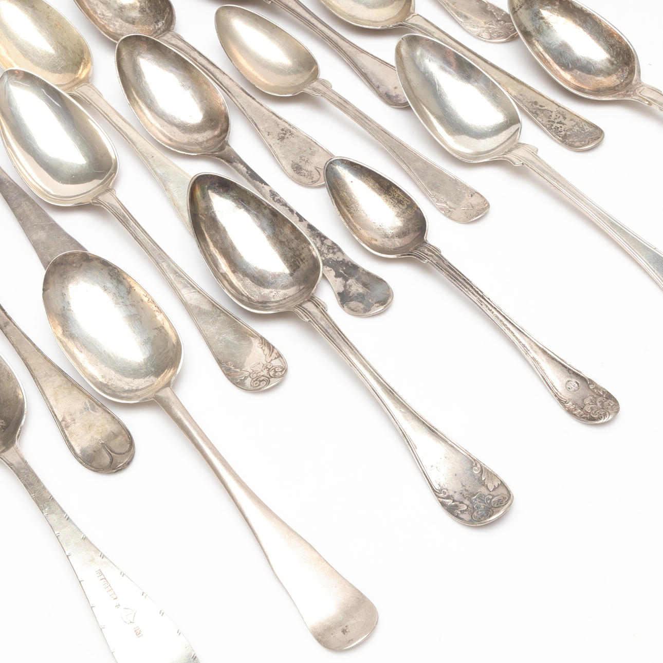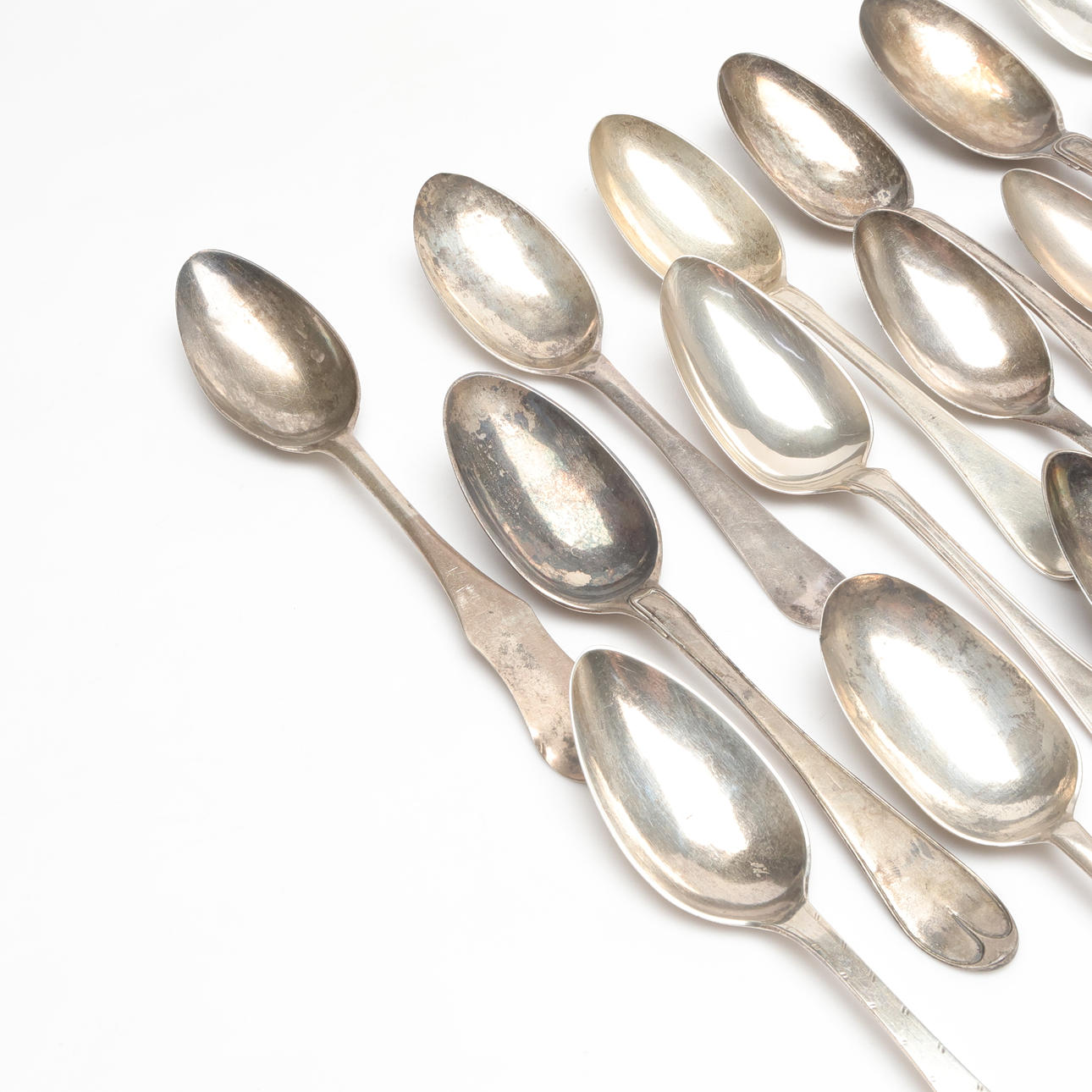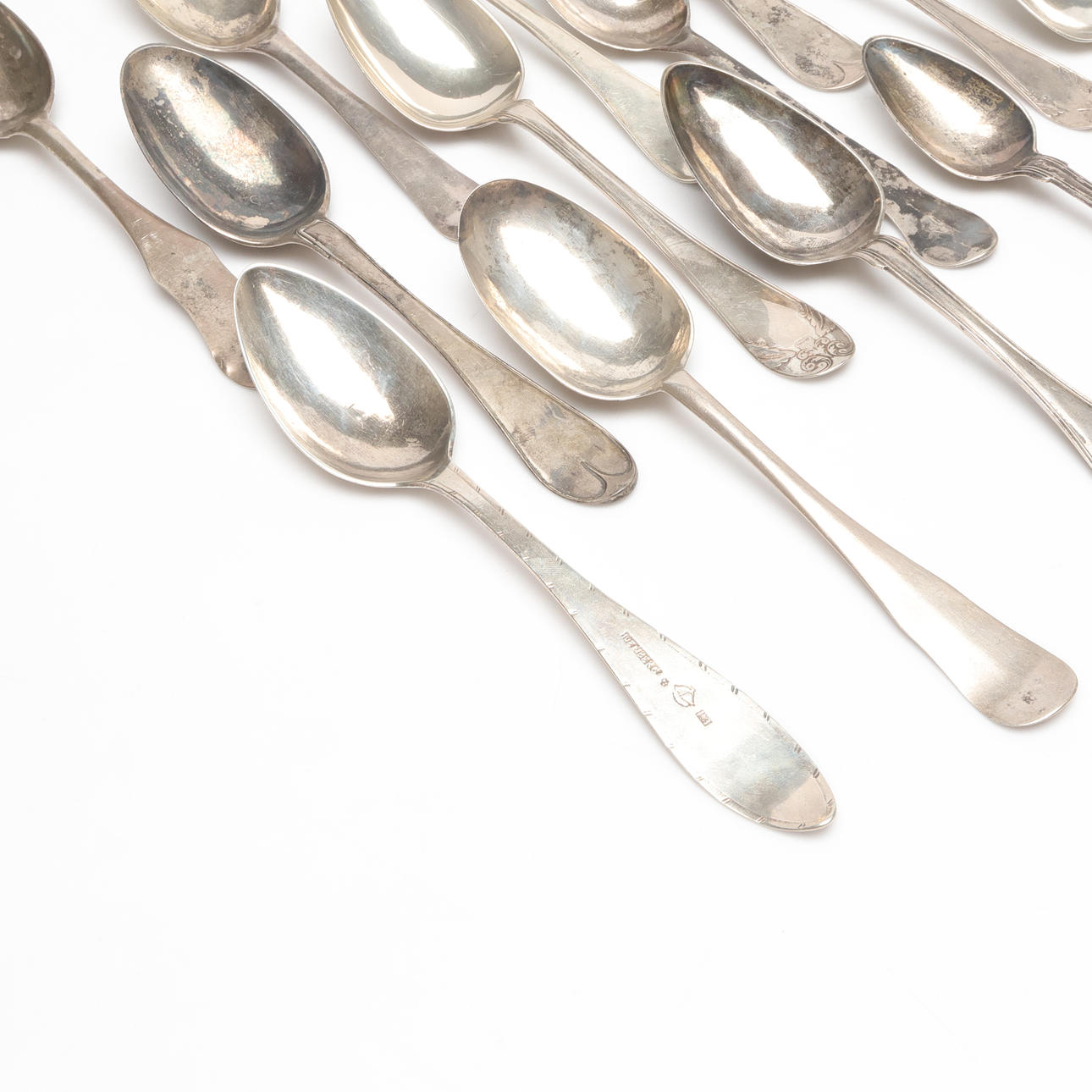 5018740. BOX AND SPOONS, Silver, weight approx. 974 grams.