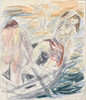 Man and woman in boat. Signed. 25x21 cm