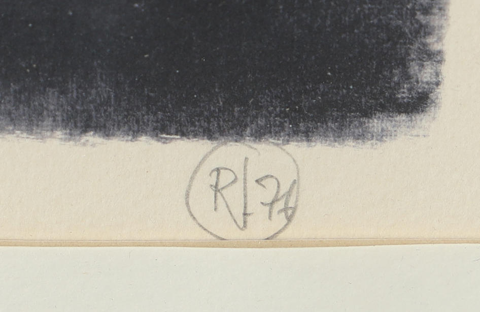 ROJ FRIBERG. Composition with birds, lithograph, monogram signed.
