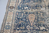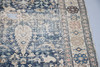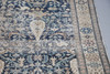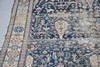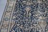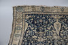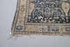 the indigo field with stylised birds, figures and plants within an ivory border of medallions, flanked by guard stripes, 340cm x 154cm.