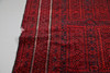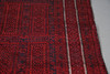 red ground, the field with panels of repeating geometric motifs, within multiple borders, 277cm x 160cm.