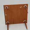 It's teak. Square disc. Dimensions 70 x 70, height 39 cm.