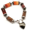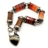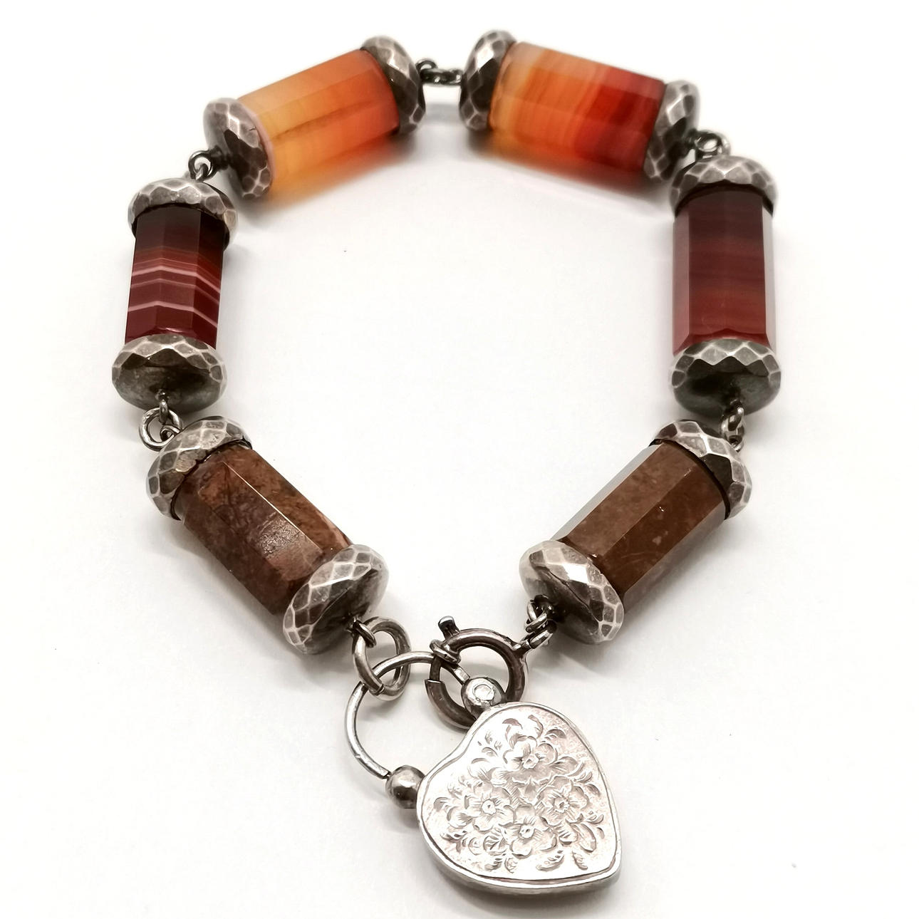 Antique Scottish unmarked silver hardstone agate bracelet with heart locket pendant - 22cm long & 43g total weight.