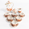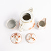 One cup with crack, two cups with chips, coffee pot and sugar bowl with small chips to floral decoration.
