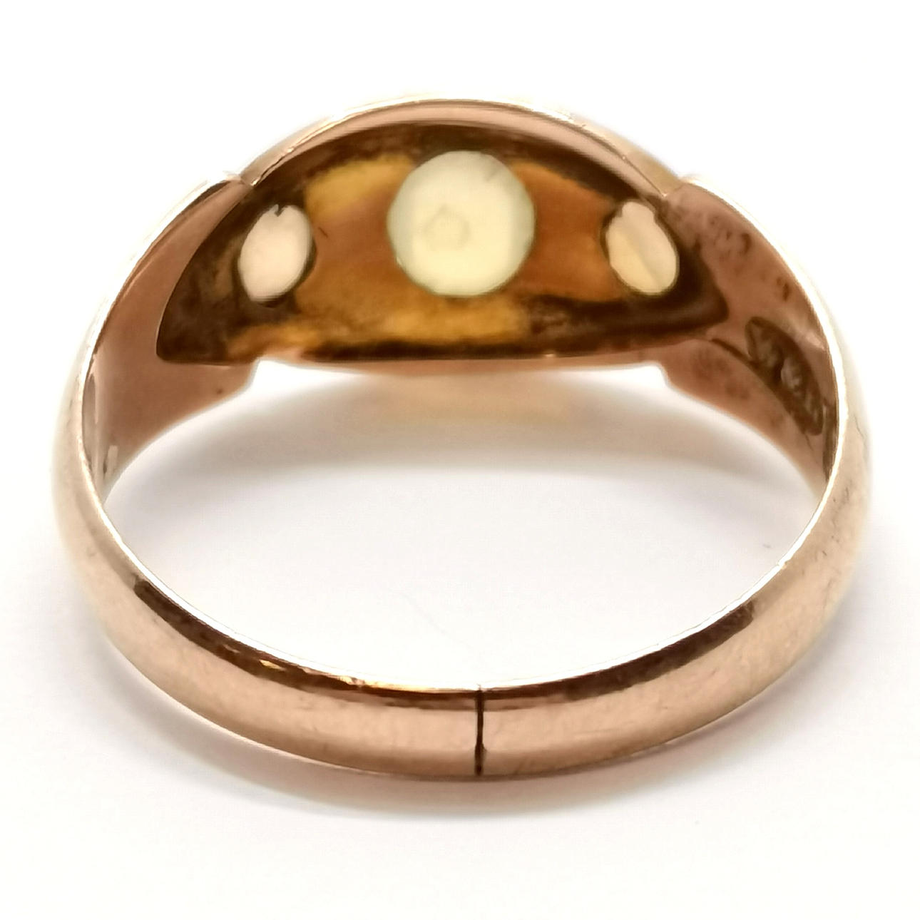 5018965. ANTIQUE 9ct GOLD 3 STONE OPAL RING.