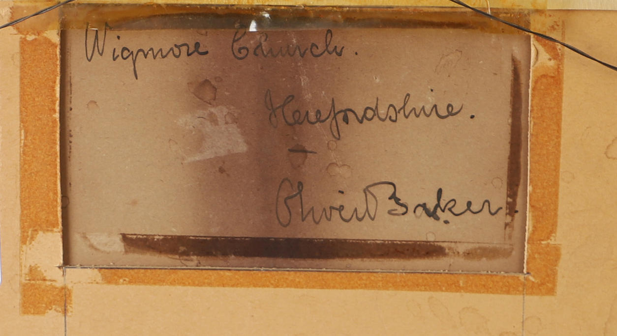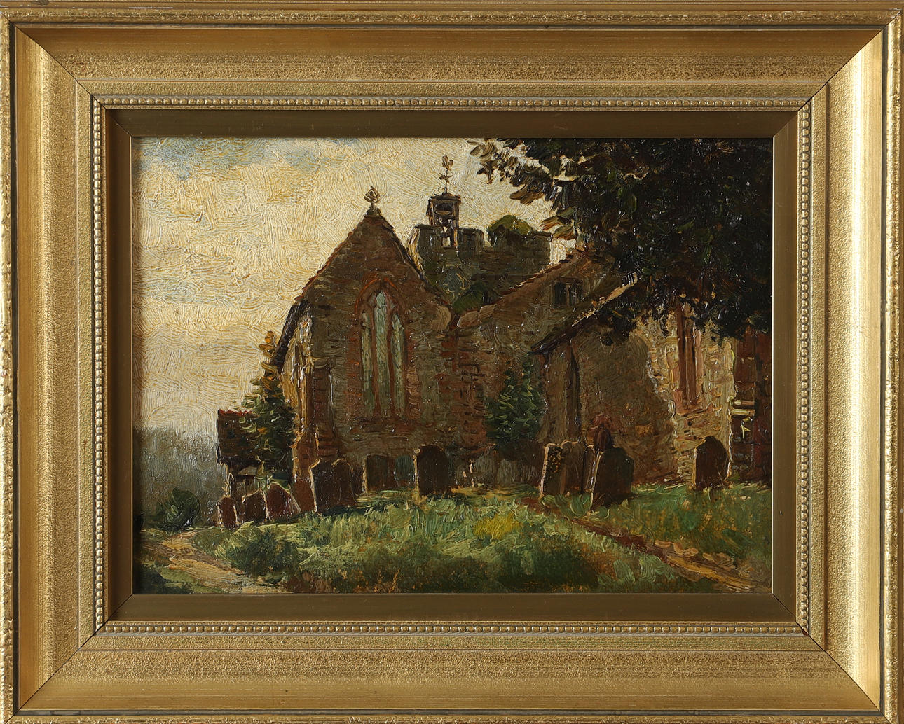 5018982. OLIVER BAKER. Church, oil on panel, unsigned.