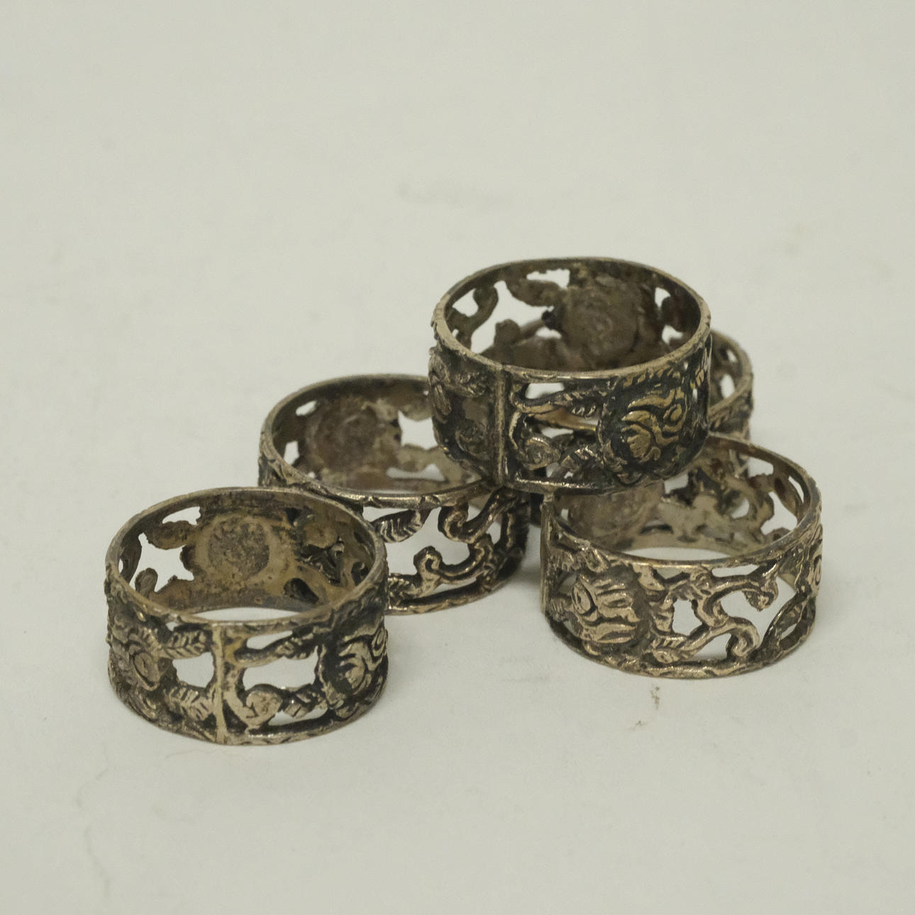 5 napkin rings with relief motifs, diameter 2.2 cm.