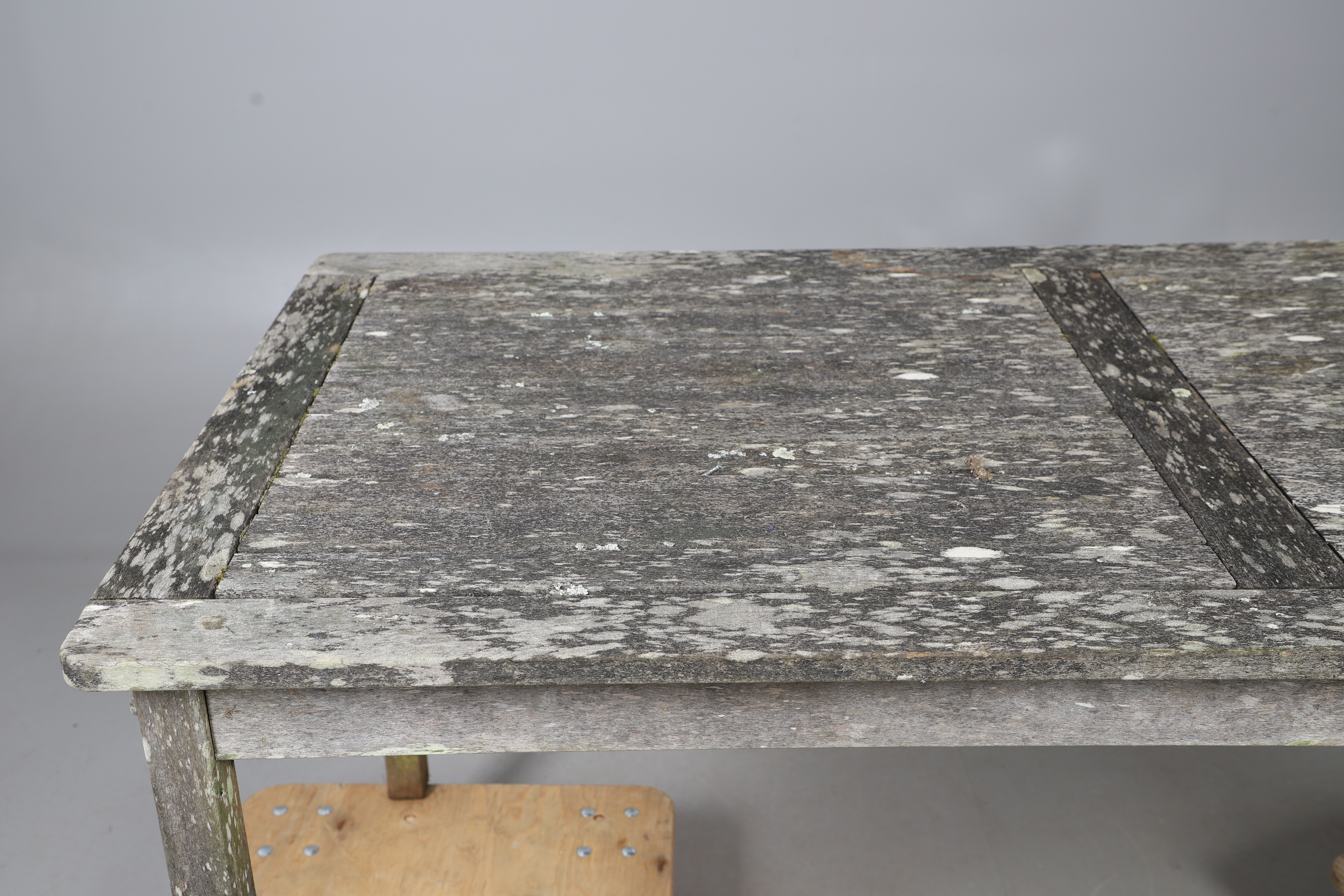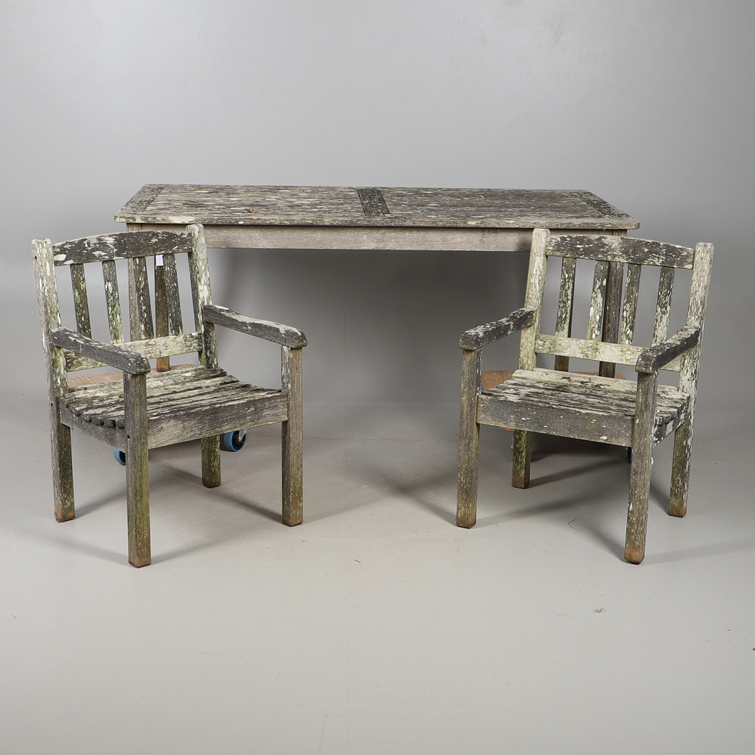 5019078. LARGE GARDEN TABLE WITH TWO COSMO BRANDED CHAIRS.
