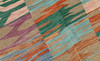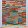 Hand-woven Kelim in modern design with abstract rod pattern in polychrome color scale.