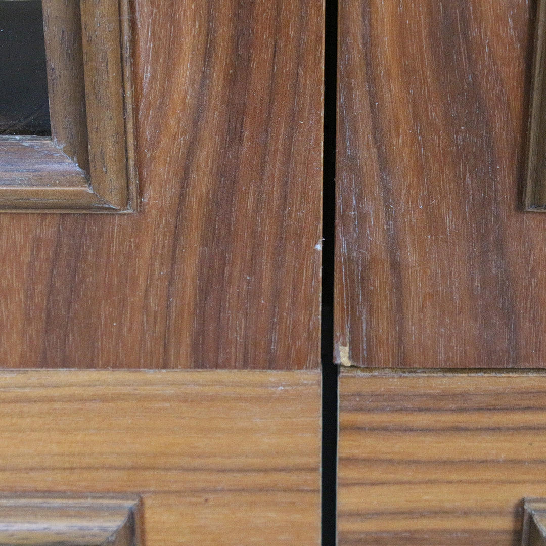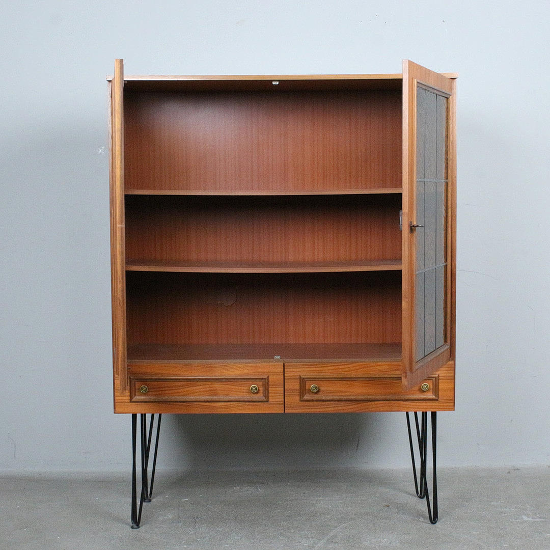 1970s display cabinet, walnut, Germany. Made of walnut, glass and metal
