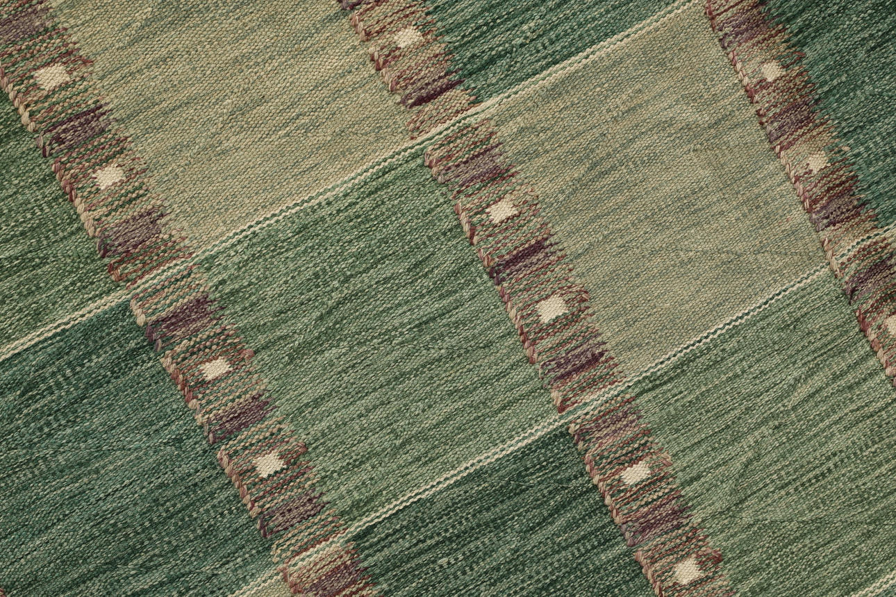Hand-woven Kelim in modern design with a grid of squares in green color scale.
