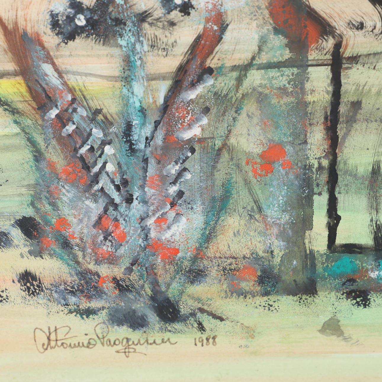5019139. ANTONIO PASQUALINI. Composition, mixed media, signed 1988.