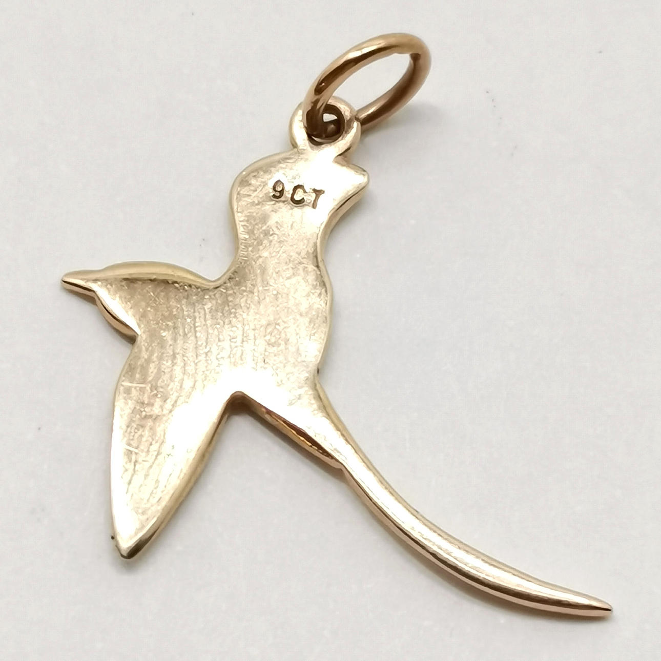 9ct marked gold tropicbird pendant - 2.8cm & 1.5g.