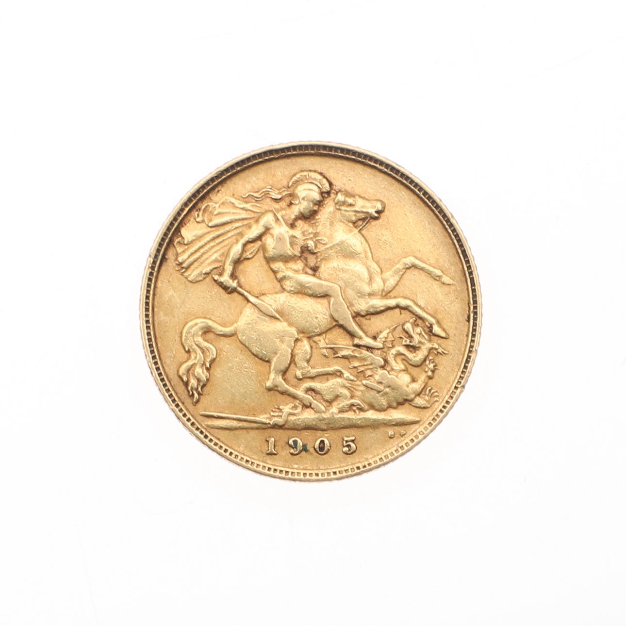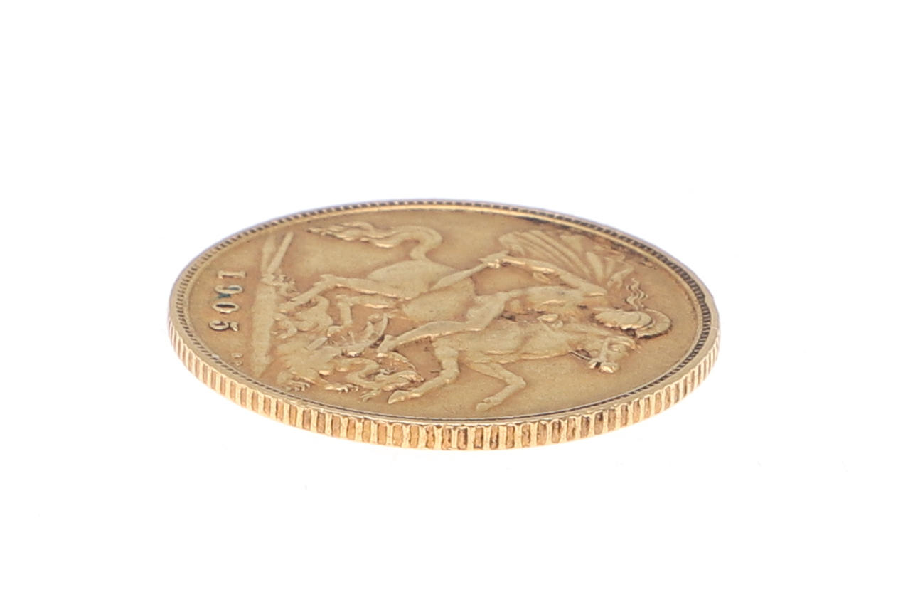 A gold half sovereign, dated 1905.