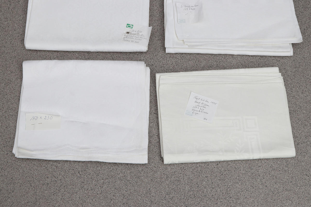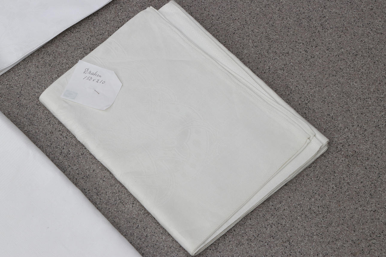 5019232. TABLECLOTHS, SIX PCS. Damask woven linen, including dragon loops.