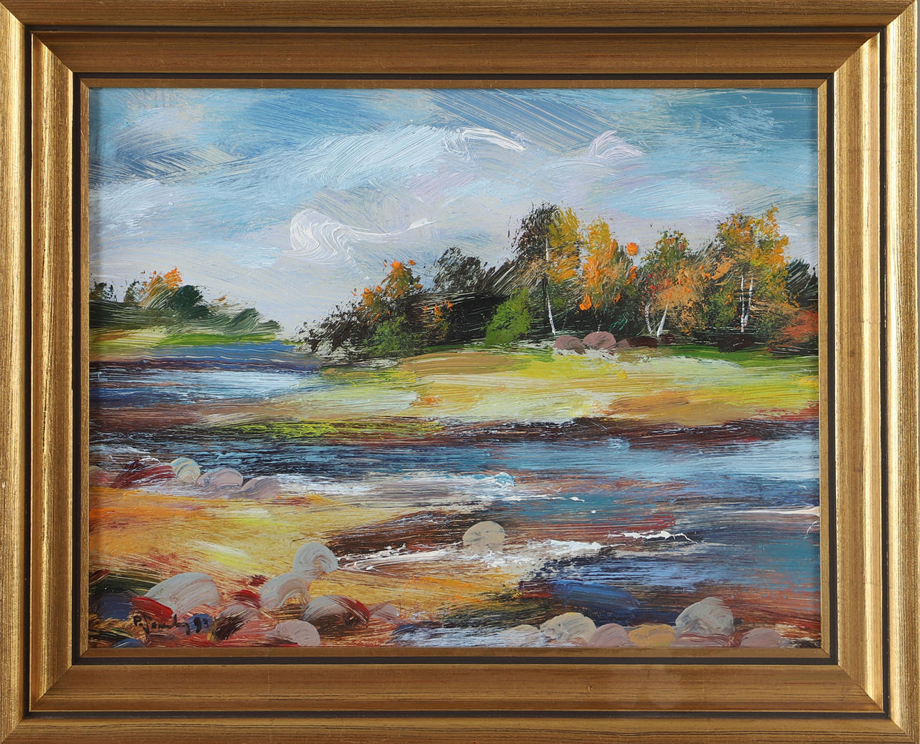 5019247. OIDENTIFIERAD KONSTNÄR. Landscape with water, oil on panel, indistinctly signed.