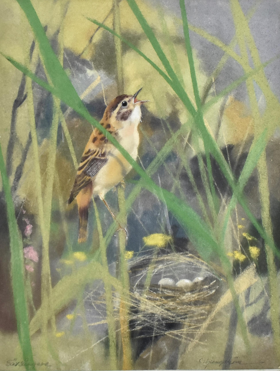 Common warbler. Signed. 28x22 cm. Overall dimensions 46x35 cm.