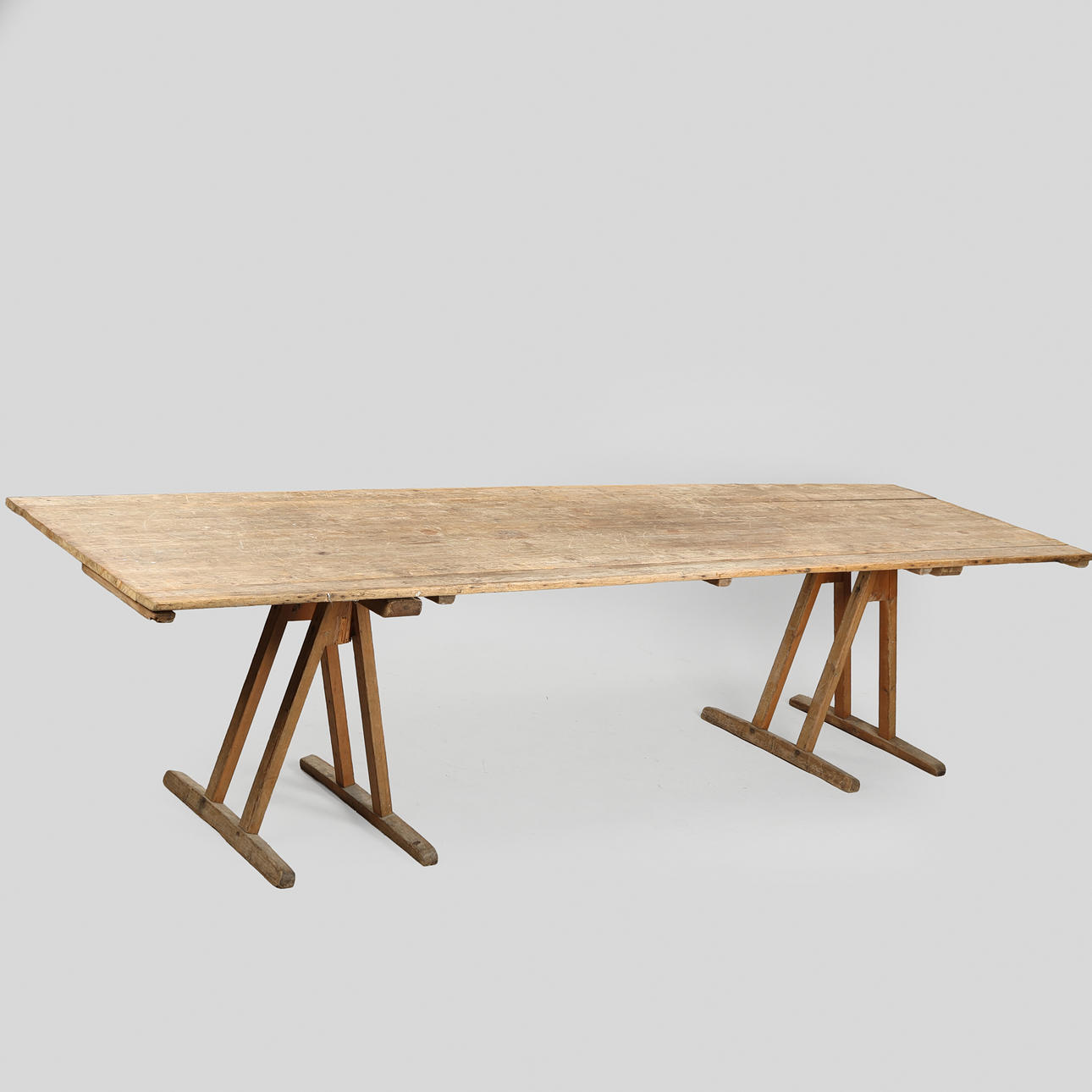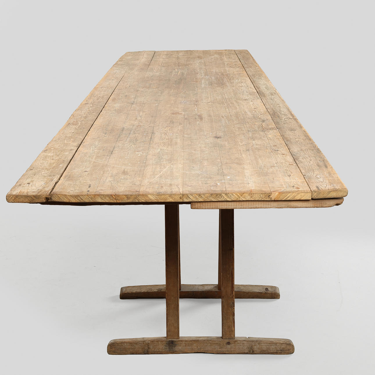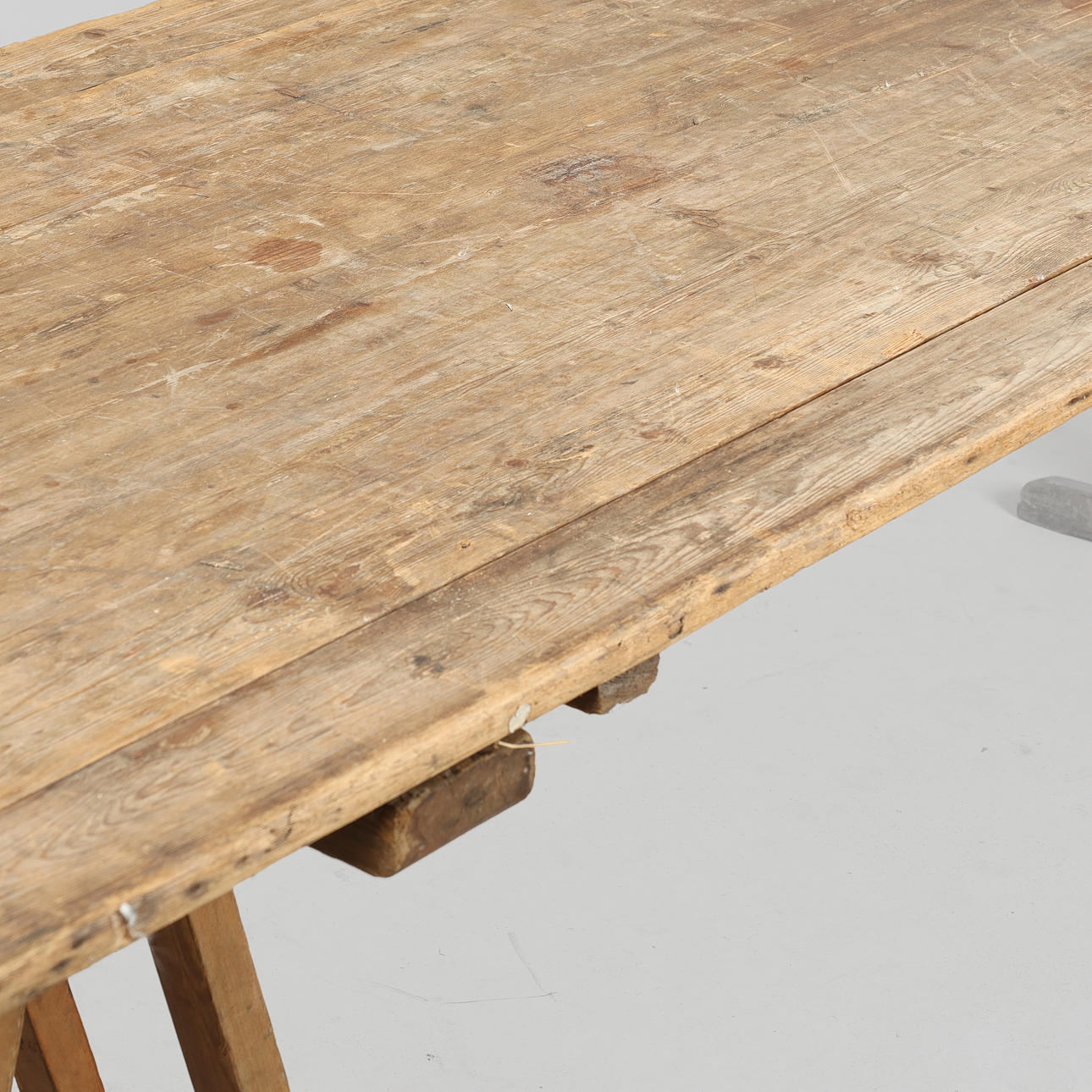 5019318. Long trestle table table made of pine, Denmark, 1900s.