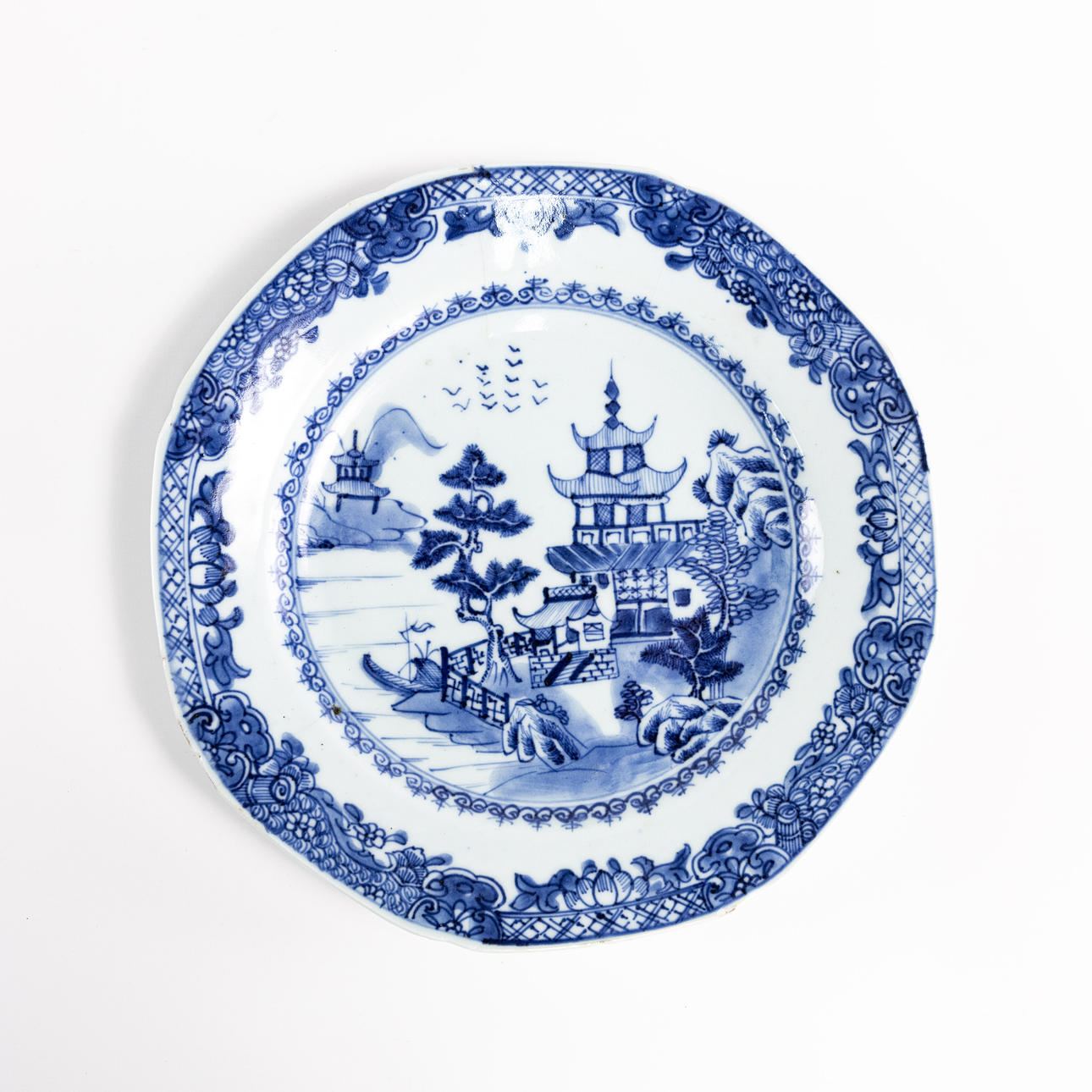 Chips, two plates with crack. One plate with repair.