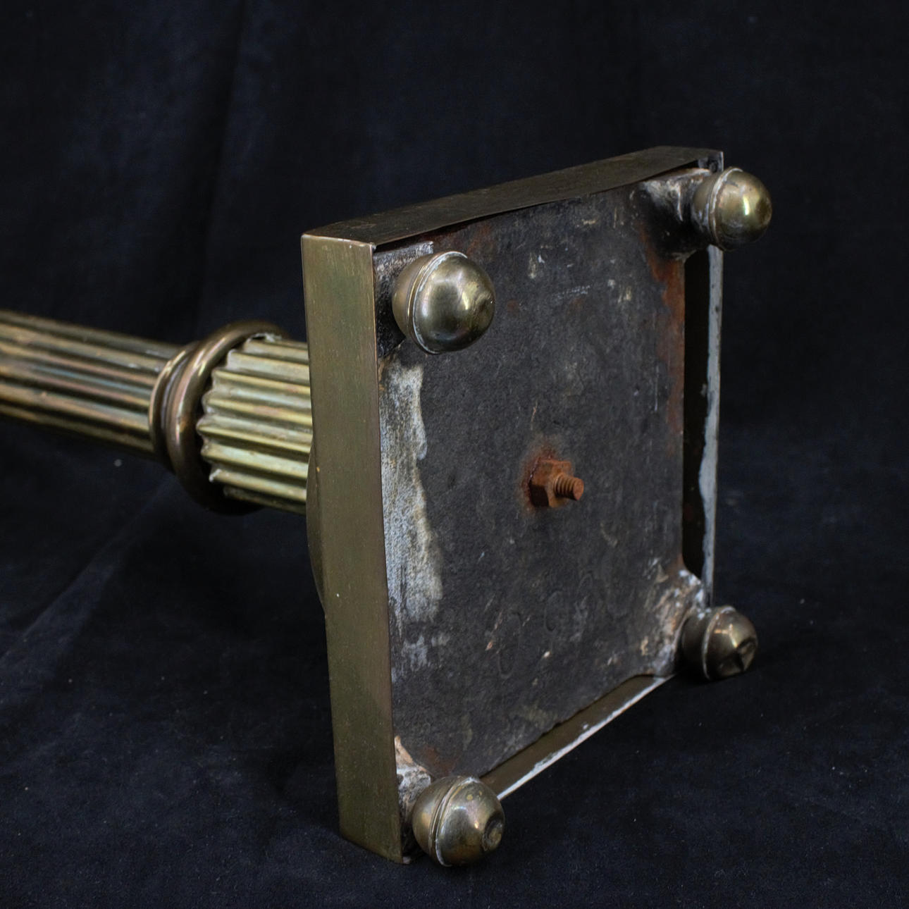 TABLE PHOTOGENIC LAMP, electrified, brass, container and screen with ground, pantographed decor, 20th century.
