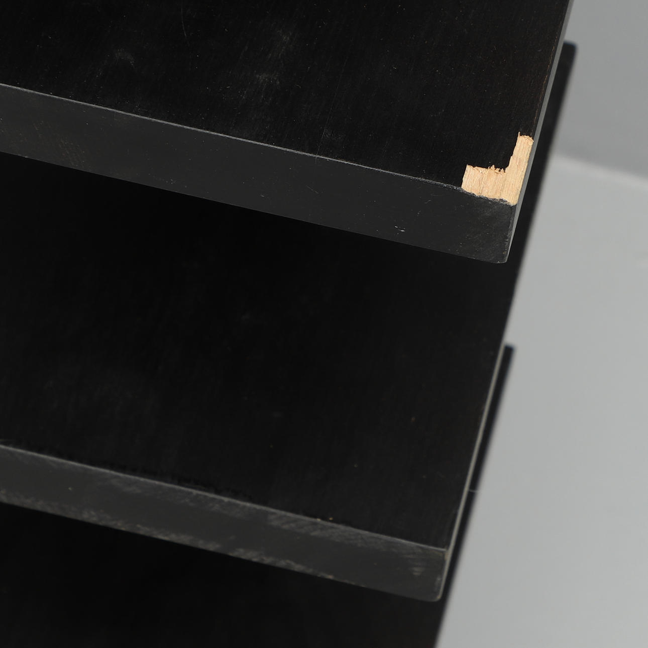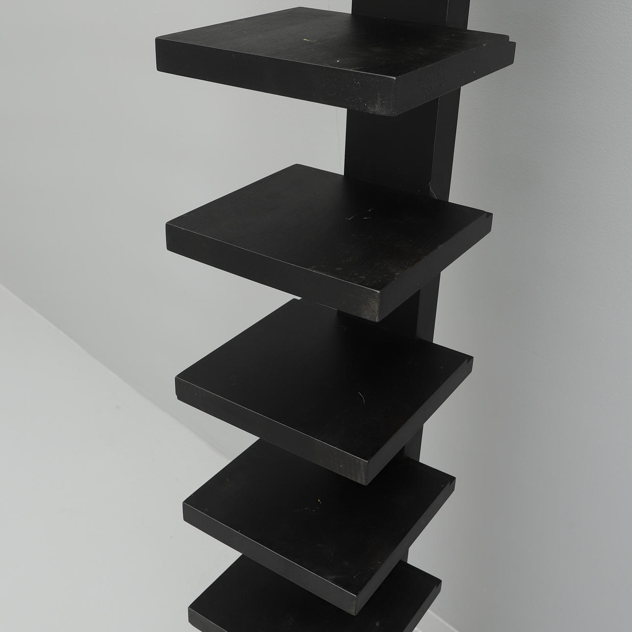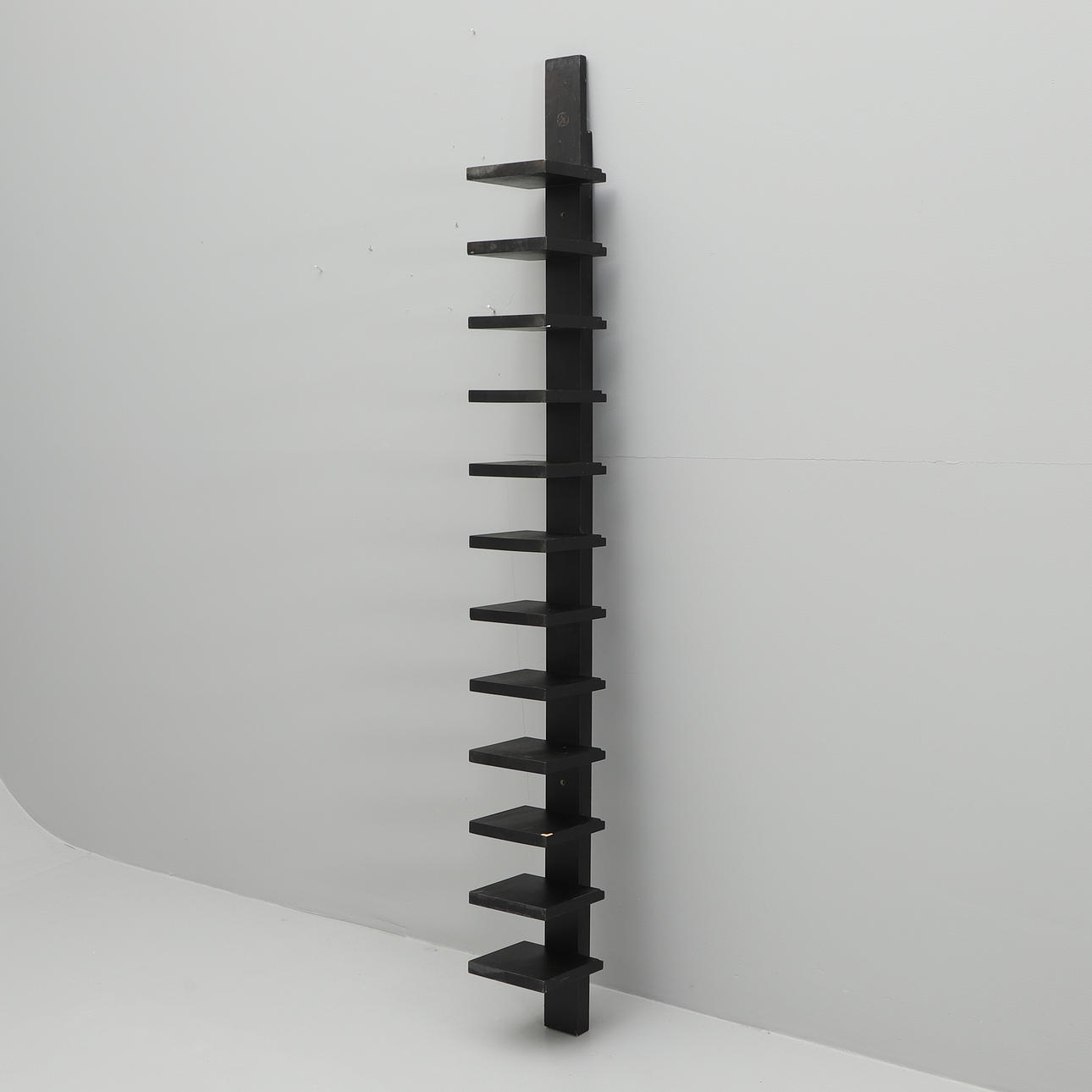 Pilaster shelf, black lacquered,, 12 shelves, loin 205 cm, width 20 cm, depth 24 cm.