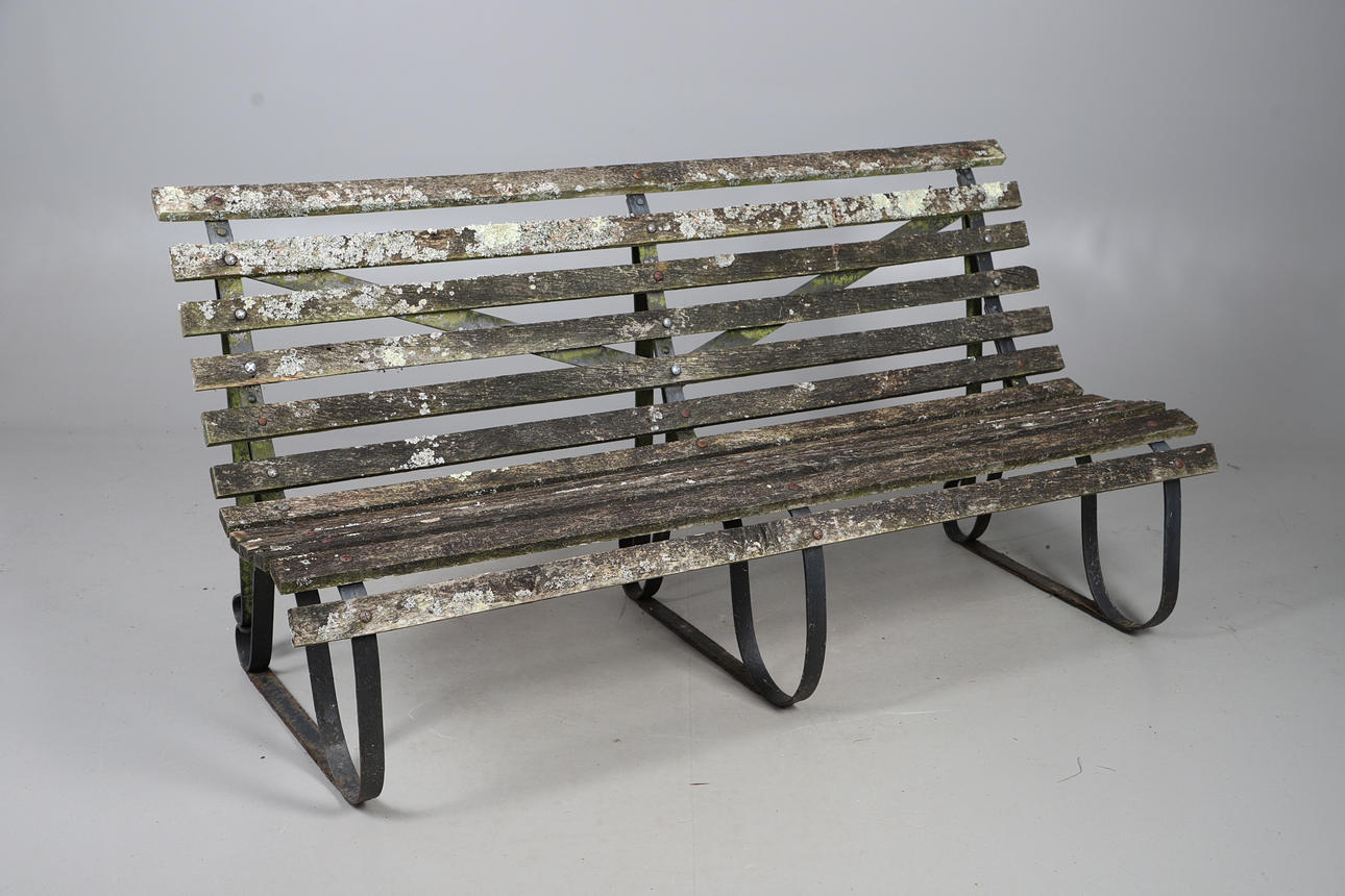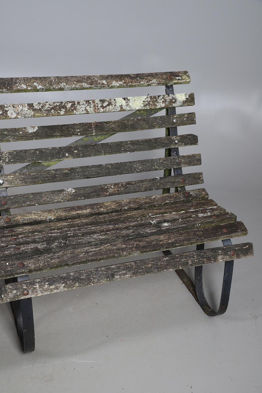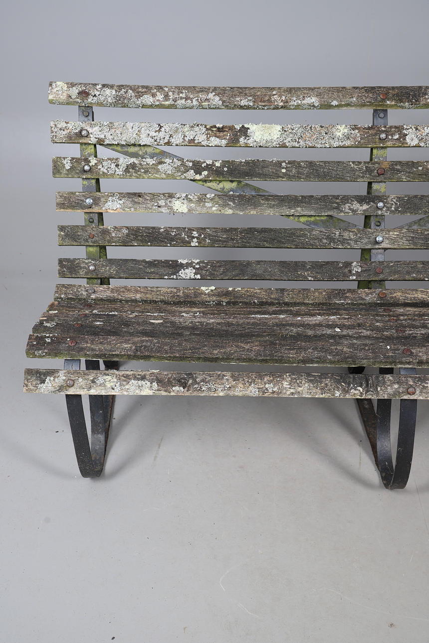 HARDWOOD IRON FRAME BENCH.