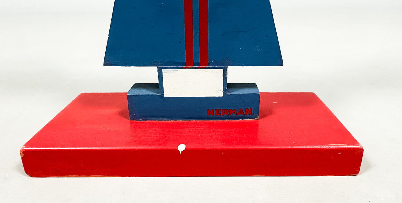 EINAR NERMAN. TABLE CANDLE HOLDER, 2-armed, wood, signed.