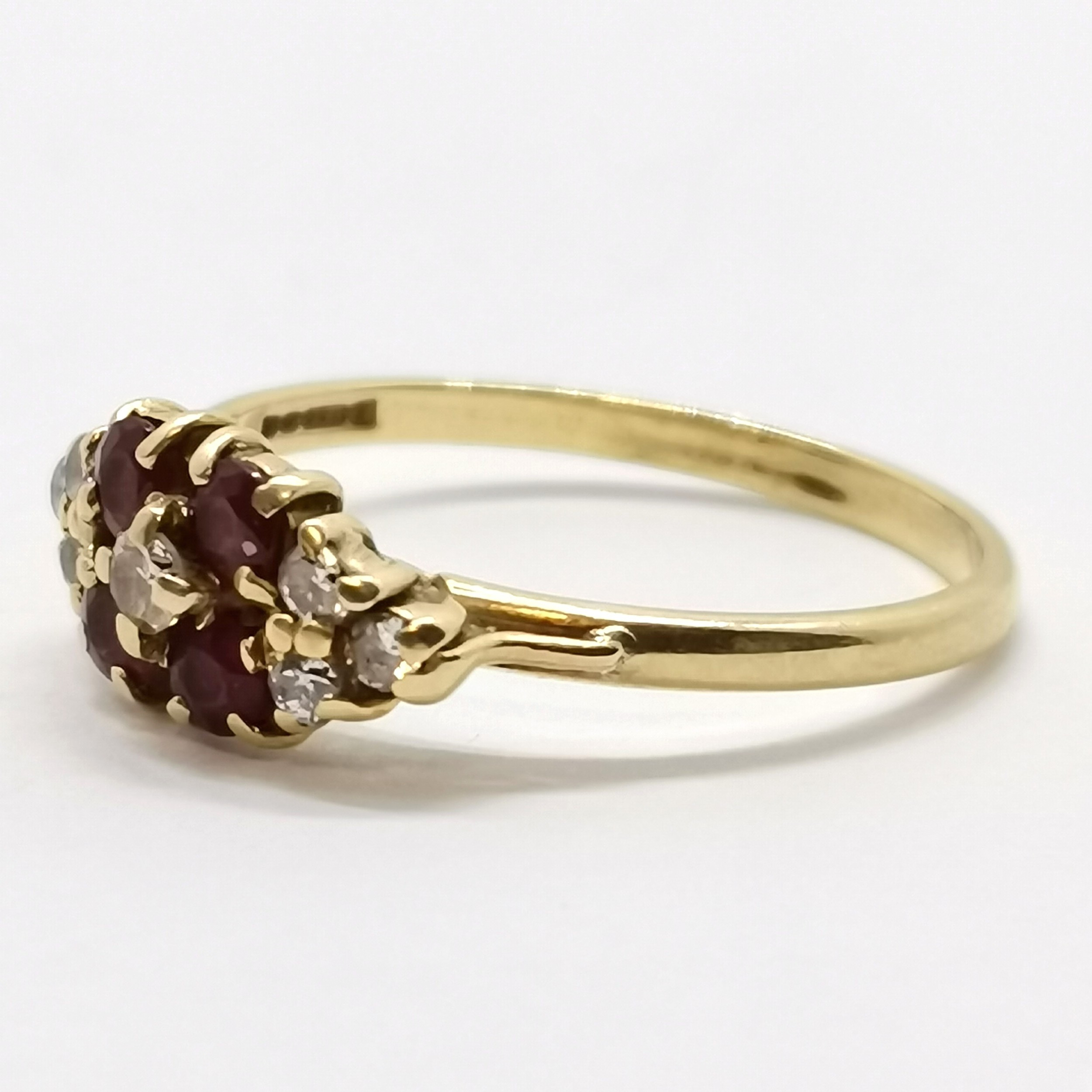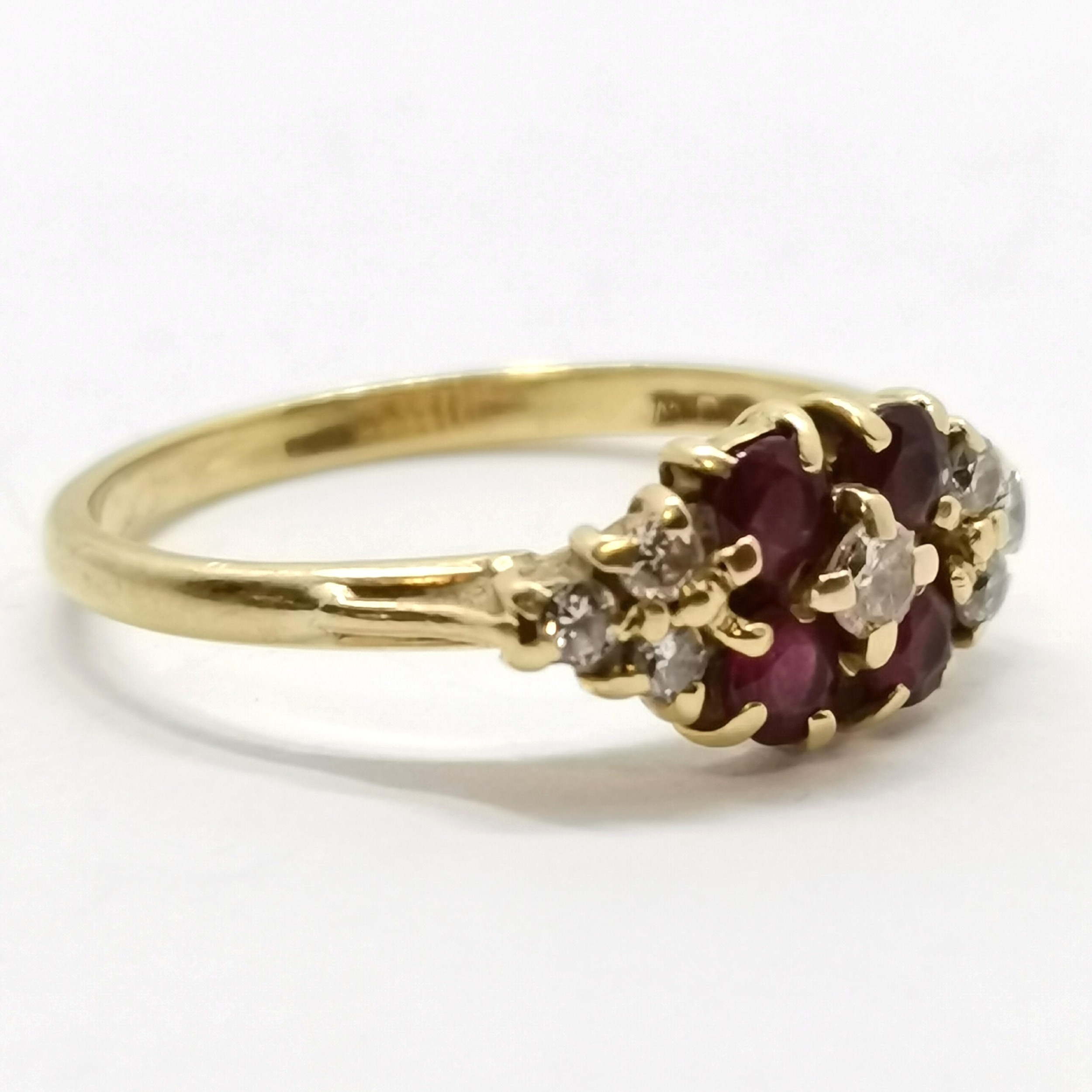 5019533. 18ct GOLD RUBY (4) & DIAMOND (7) STONE SET RING.