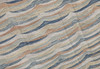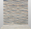 Handwoven Kelim in modern design with abstract wavy pattern in blue, beige and orange.