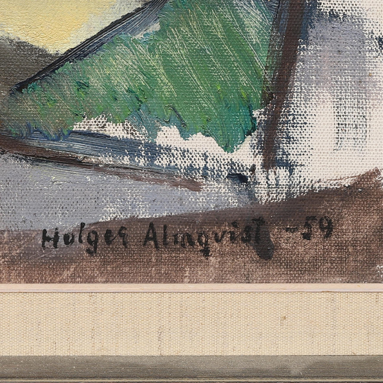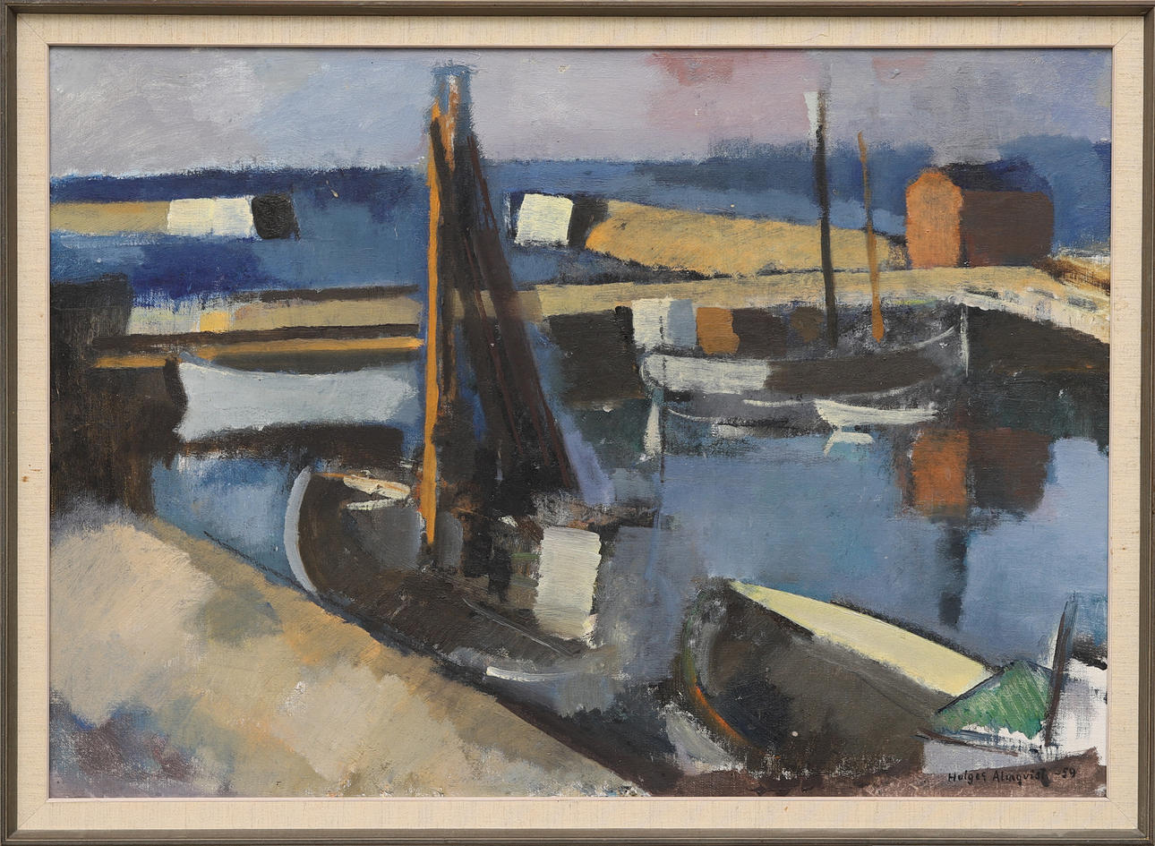 5019576. HOLGER ALMQVIST. “Hamnbild, Simrishamn”, oil on canvas, signed and dated -59.