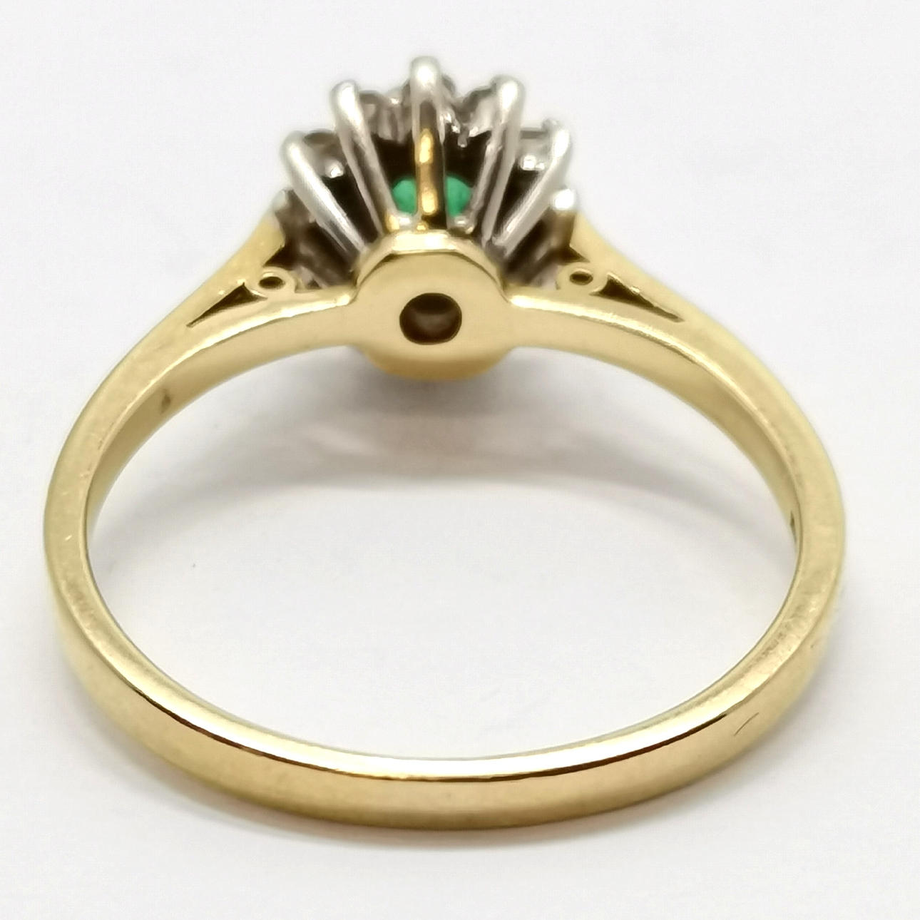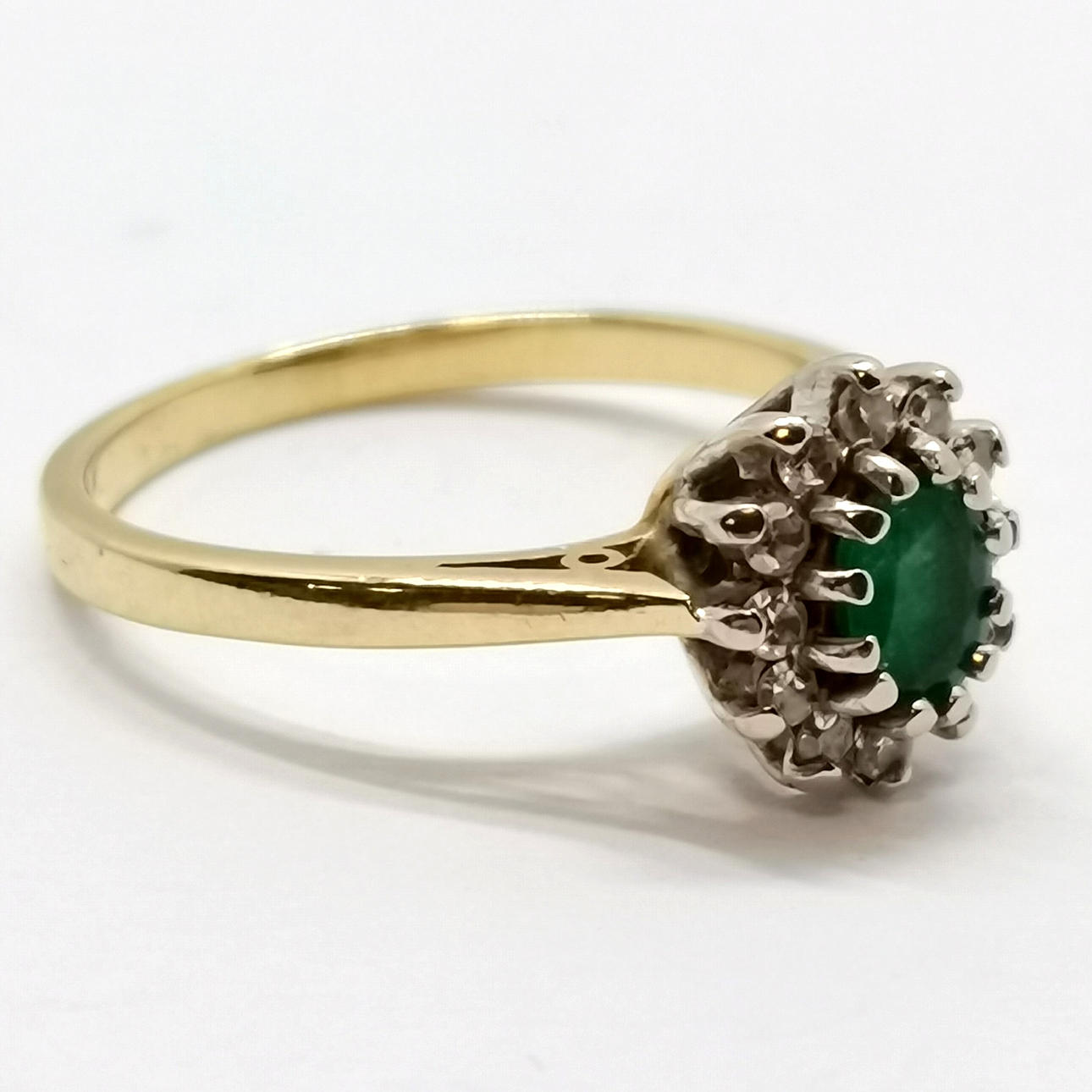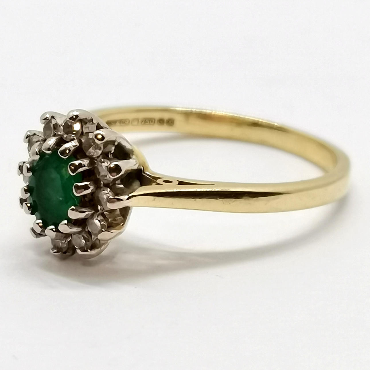 18ct hallmarked gold emerald & diamond cluster ring - size M½ & 3.1g total weight.