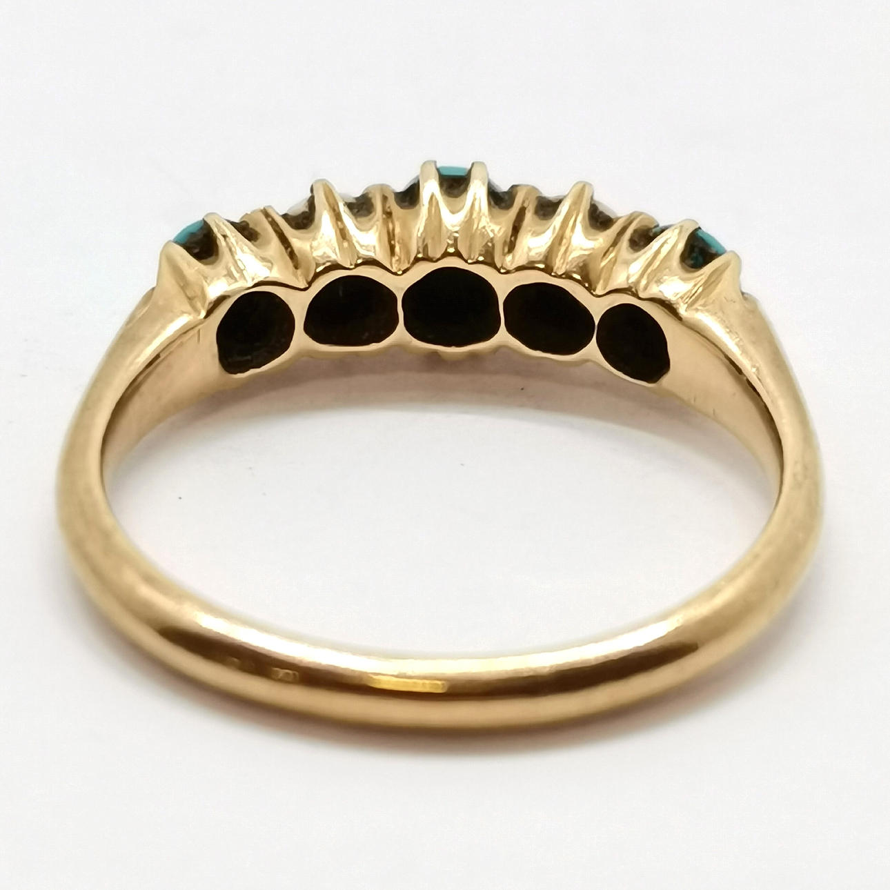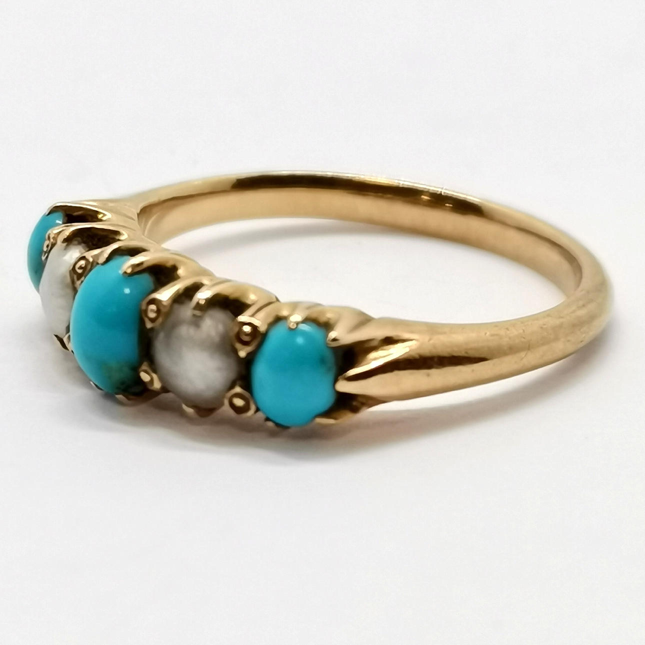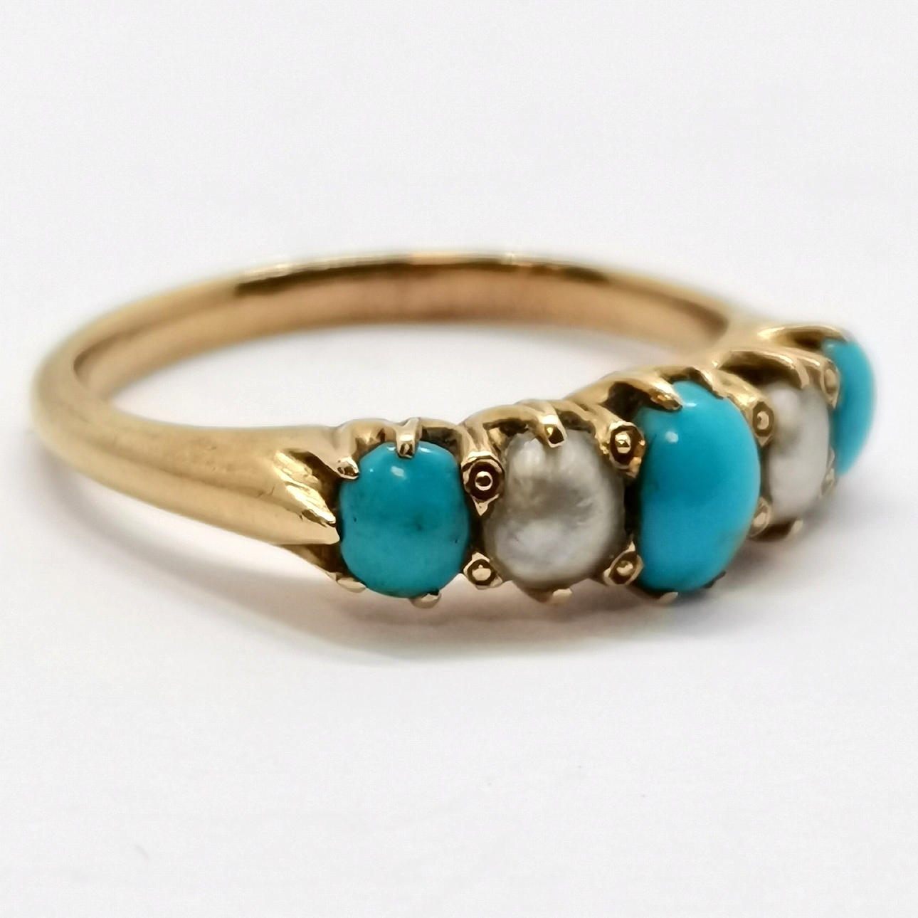 Antique unmarked (touch tests as 18ct or higher) gold turquoise & pearl ring - size K & 3g total weight.