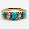 5019600. ANTIQUE 18ct+ GOLD TURQUOISE & PEARL RING.