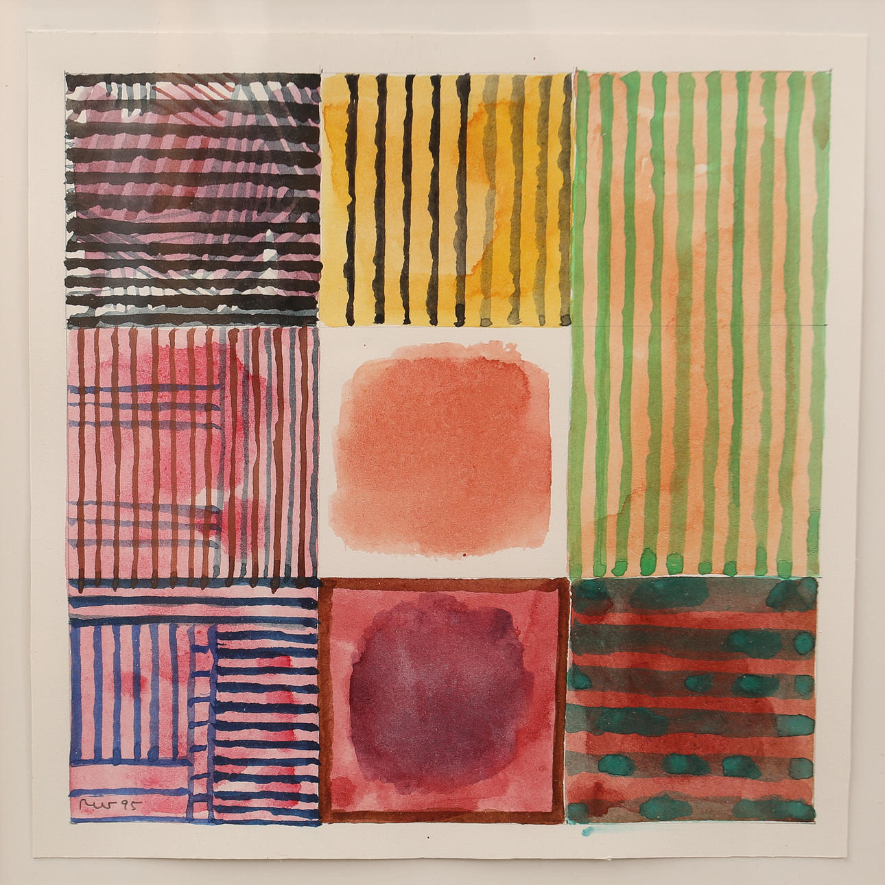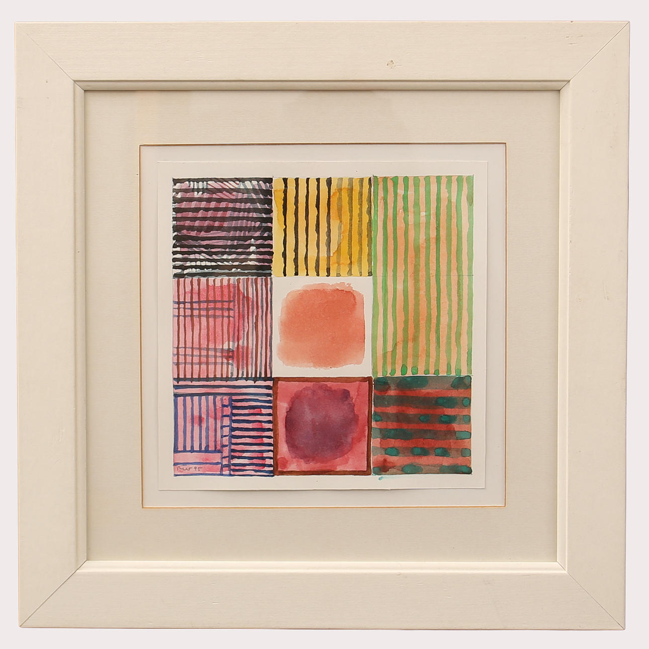 OIDENTIFIERAD KONSTNÄR. watercolor, composition yellow, green red, monogram signed Robert Weberg. Dated 95.