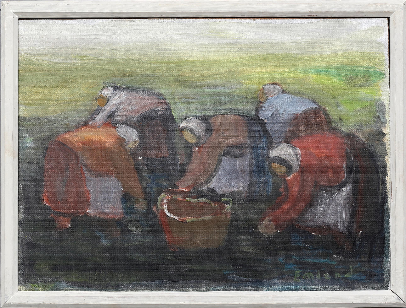 5019704. EINAR EMLAND. “Potato picking”. Oil on canvas, fed on panel, signed.