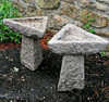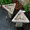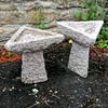 Pair of carved pink granite triangular bird baths in 2 parts - 36cm high.
