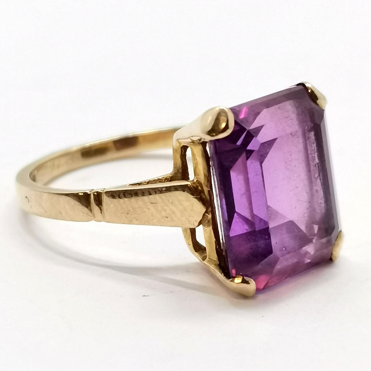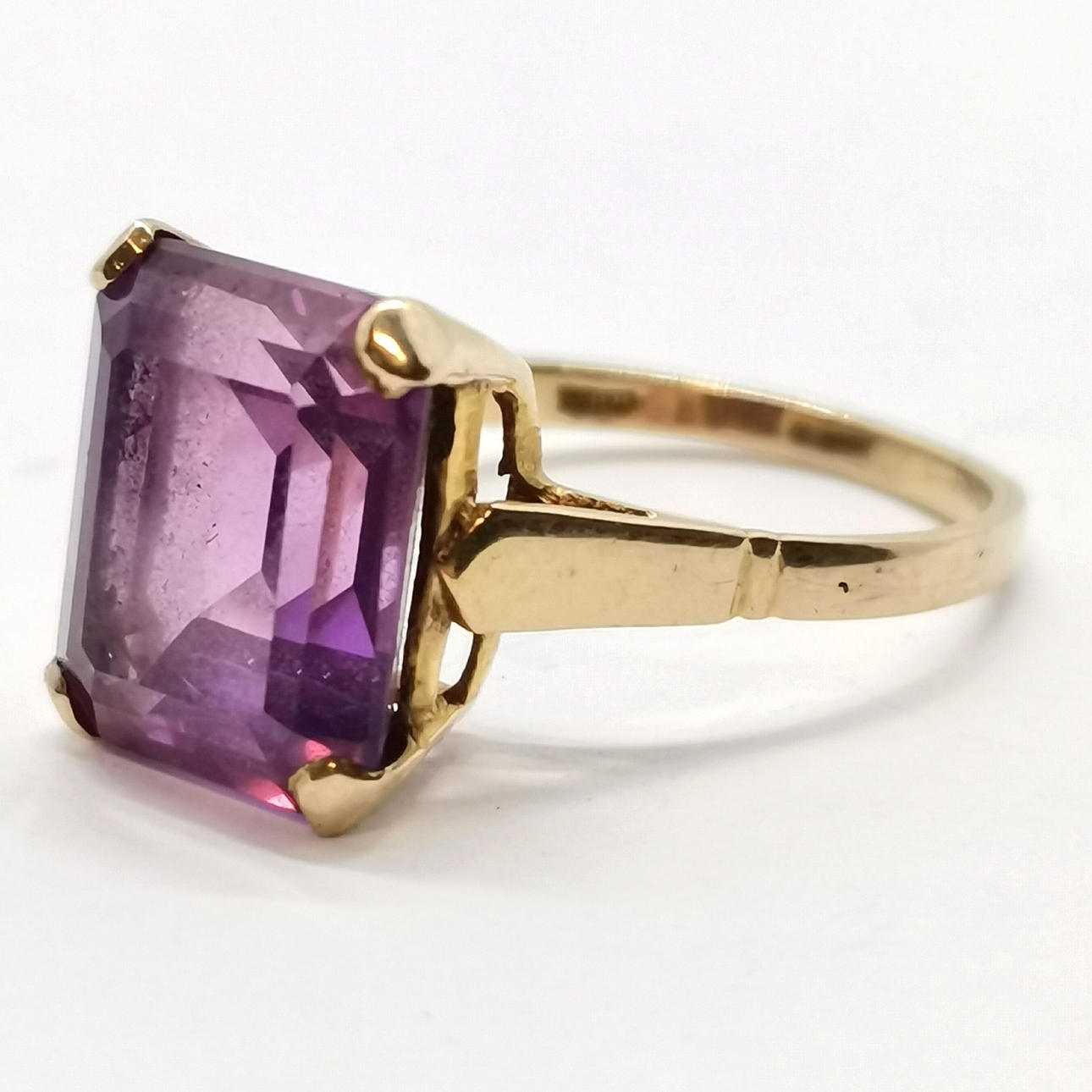 9ct hallmarked gold man made alexandrite stone set ring - size N½ & 3.6g total weight.