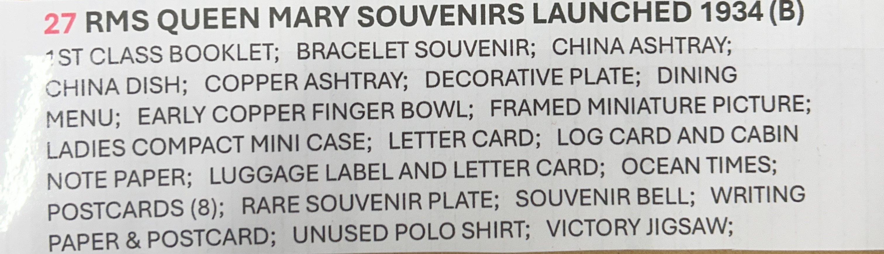 5019935. RMS QUEEN MARY SOUVENIRS.