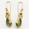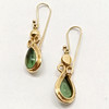 18ct GOLD GREEN STONE SET DROP EARRINGS.